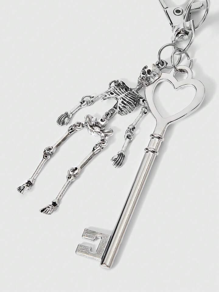Kawaii Ciondolo a forma di orsetto con ali e chiave scheletrica, ciondolo per borsa