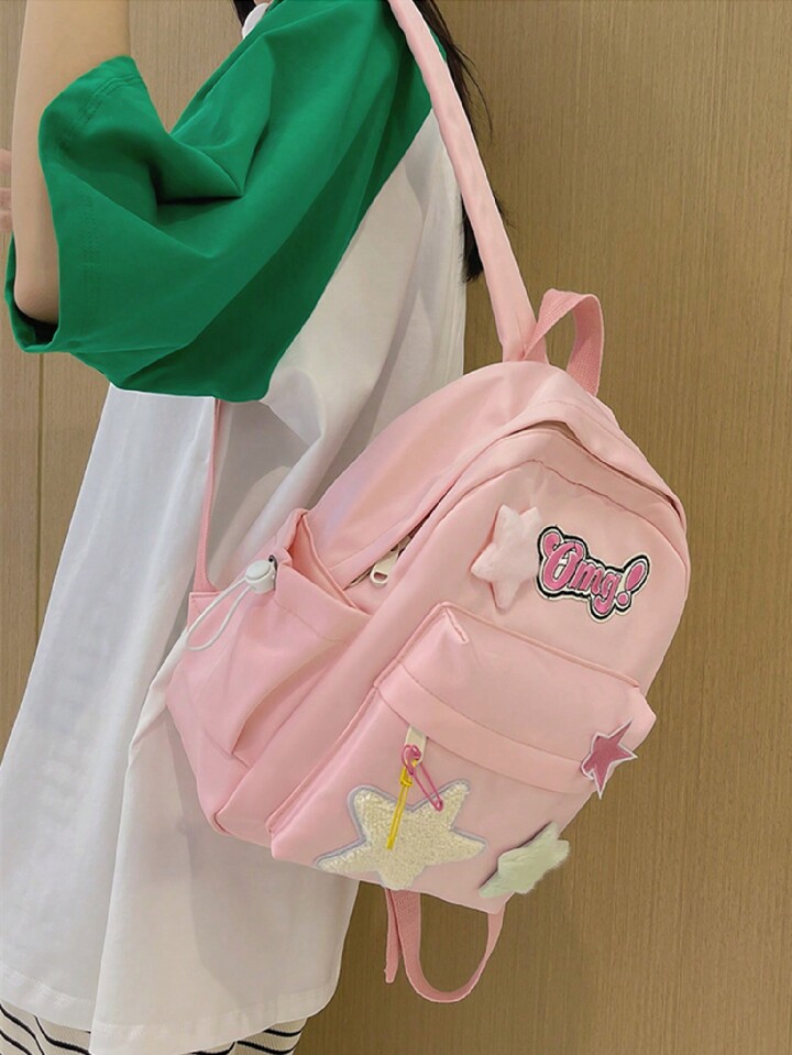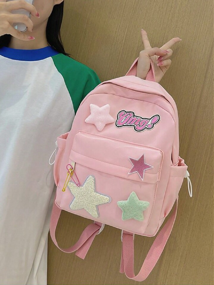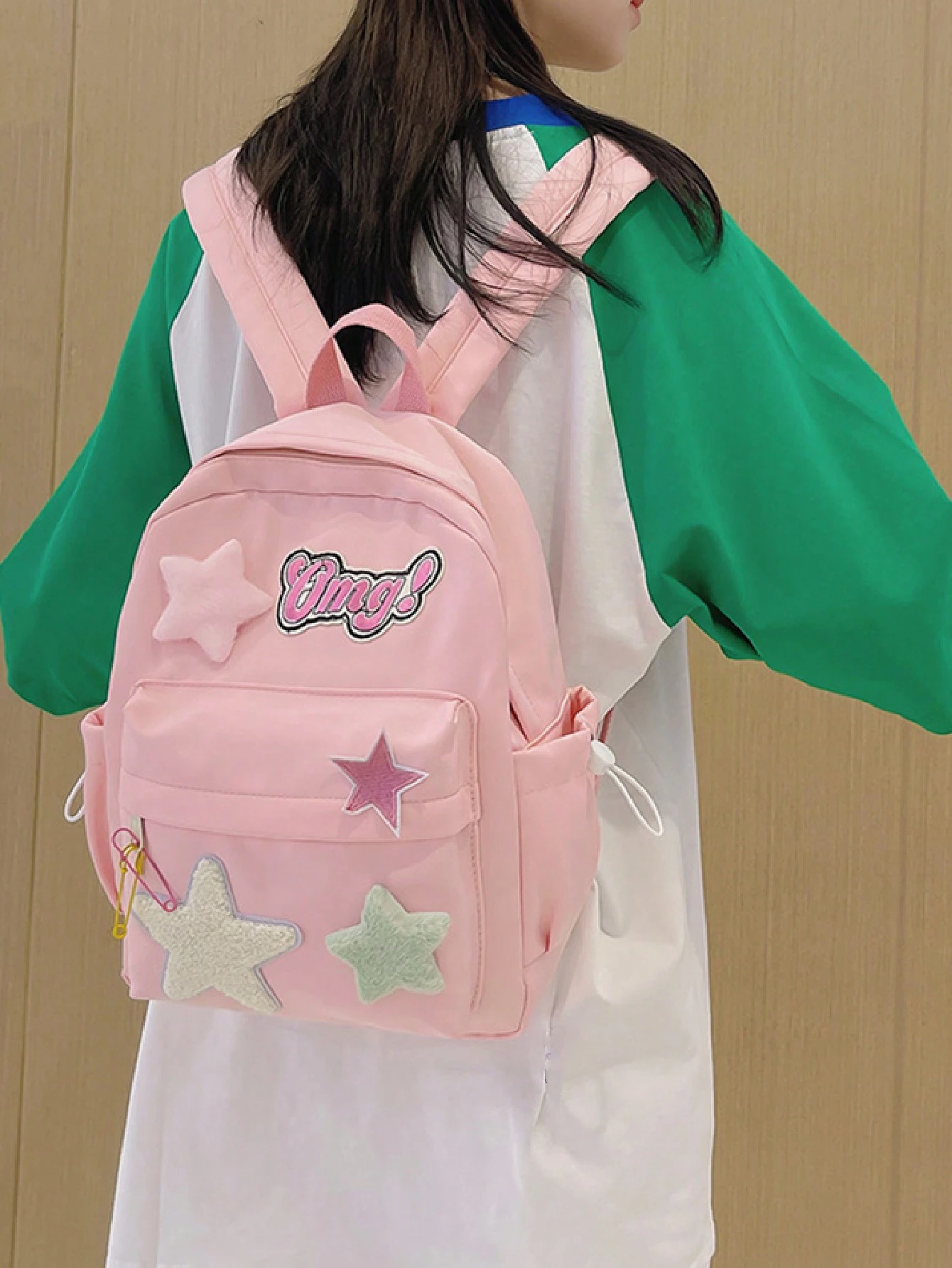 Kawaii Zaino classico medio carino stella & decorato patta di lettera per studenti