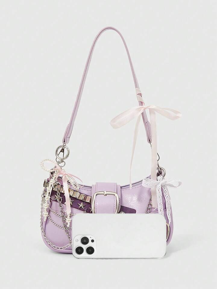 Kawaii Nuova borsa da donna e sensuale con decorazione a catena sulla spalla, borsa a tracolla stile punk rock, borsa carina e dark per ragazze