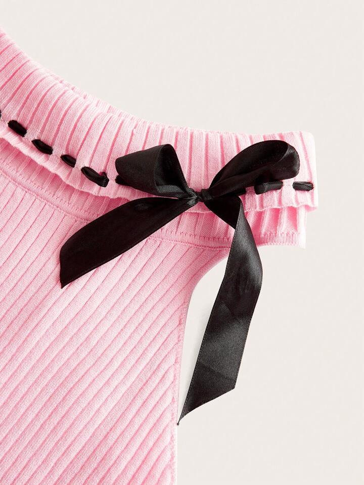 Kawaii Top in maglia con spalle scoperte fiocco frontale