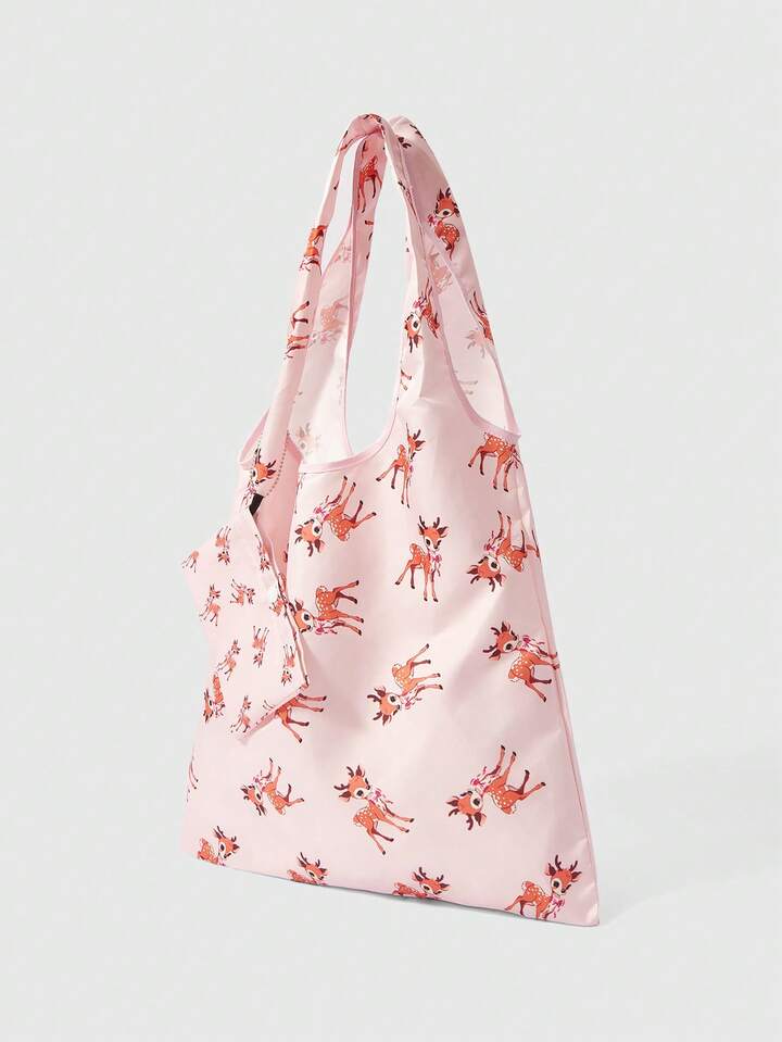Kawaii Borsa a tracolla rosa con bottoni e decorazioni in pelo di cervo