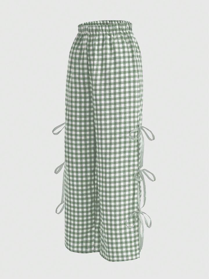 Kawaii Pantaloni casual a gamba larga con vita elasticizzata a coulisse a quadri stampati