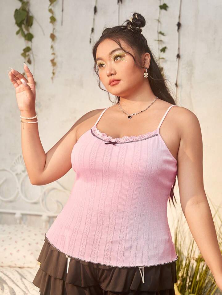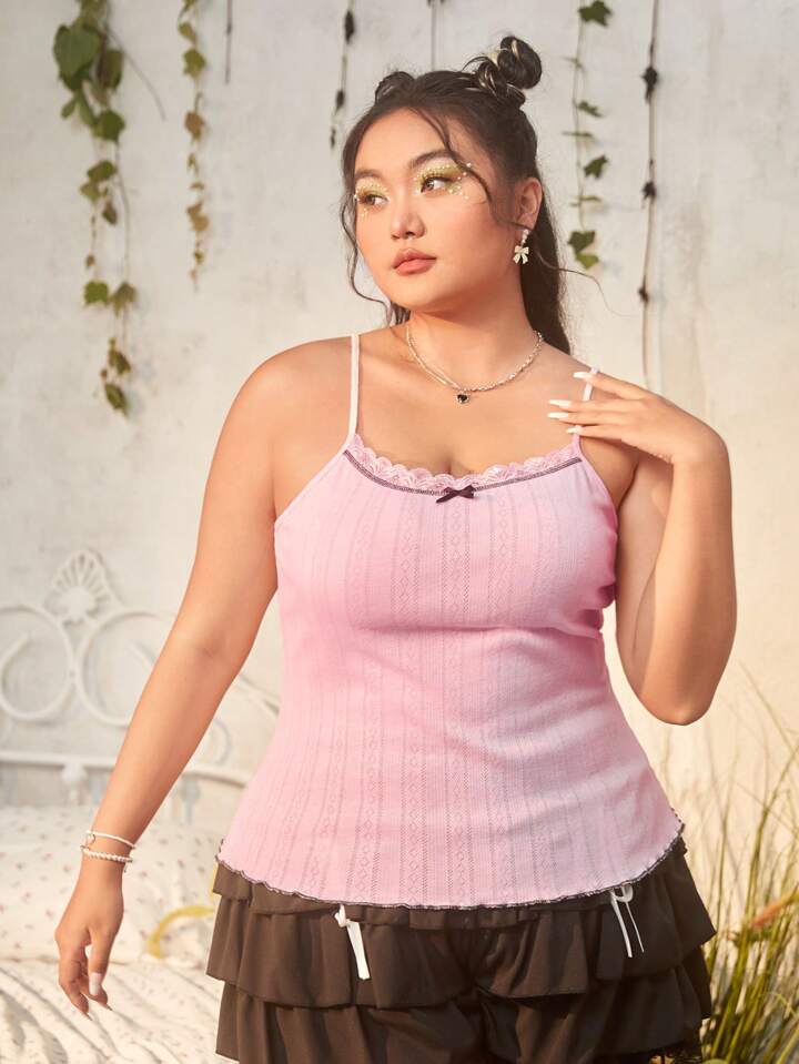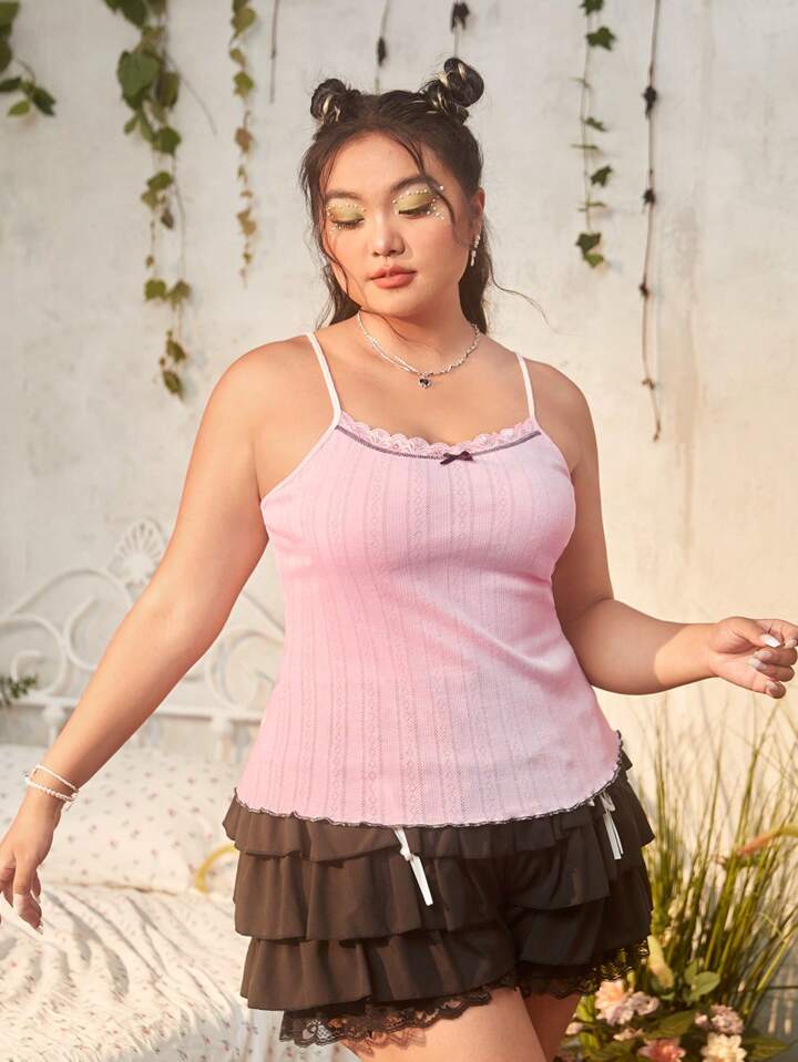 Kawaii Taglie Forti Top bretelle sottile fiocco frontale orlo lattuga