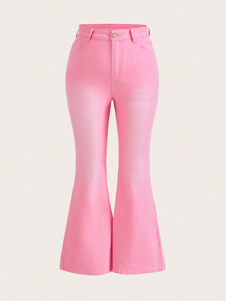 Kawaii Taglie Forti Jeans a gamba svasata fiocco dettaglio pizzo tasca con patta indietro