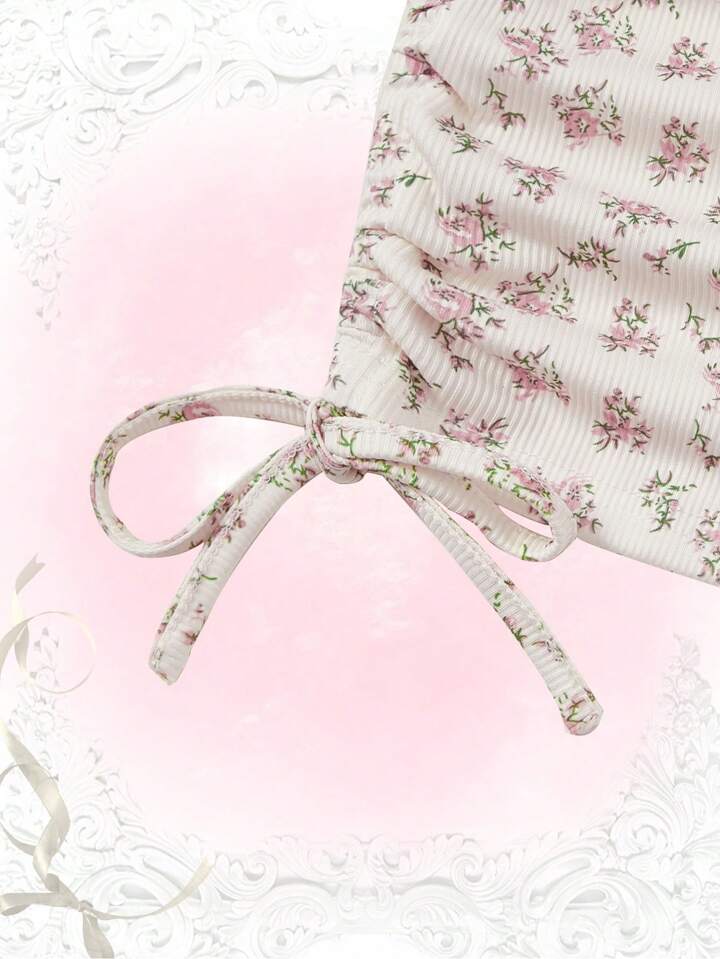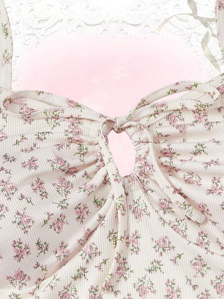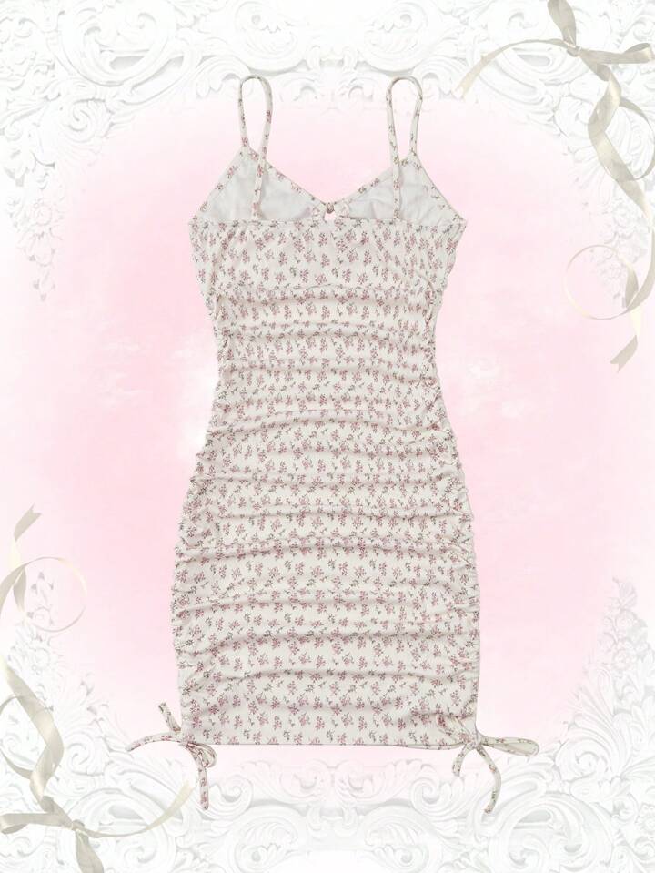 Kawaii Taglie Forti Abito con bretelle sottile fiorellini con coulisse plissettato