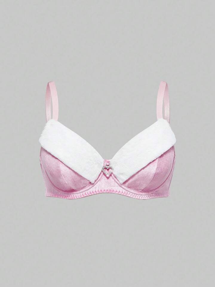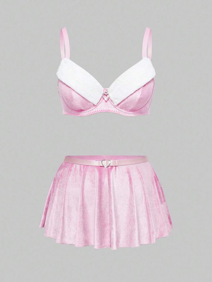 Kawaii Set di reggiseno imbottito in peluche e gonna in tulle soffice di taglia grande, dolce rosa