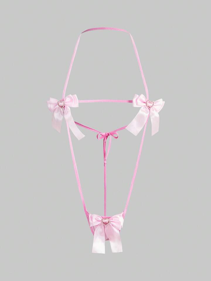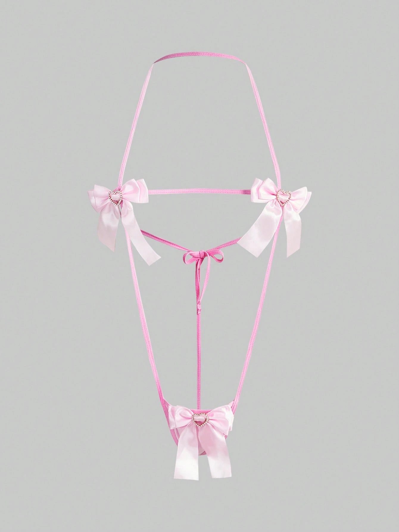 Kawaii Body taglia curvy con fiocco e strass a forma di cuore, carino e sexy
