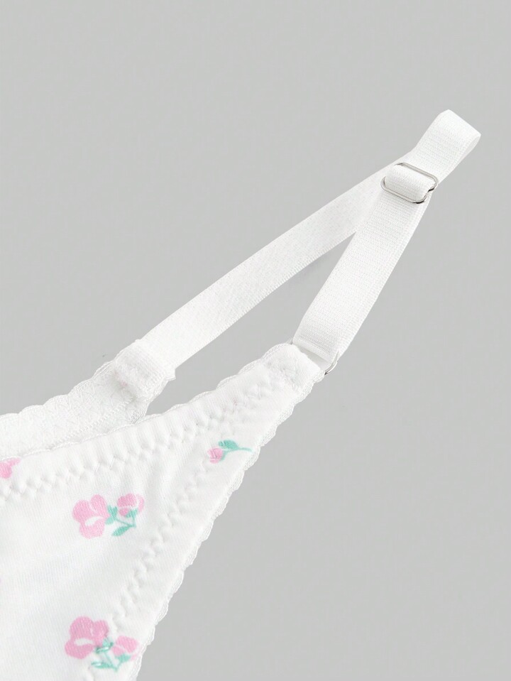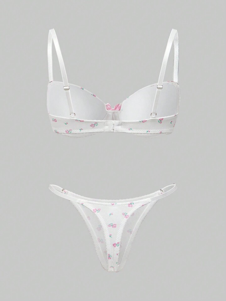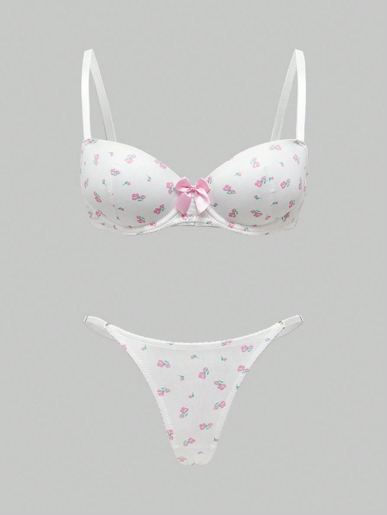 Kawaii Set di reggiseno con ferretto e slip con motivo floreale rustico, per taglie forti donne