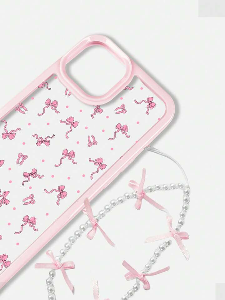 Kawaii Custodia per telefono con motivo a pois e fiocco, adatta per 11 12 13 14 15 Pro Max 16