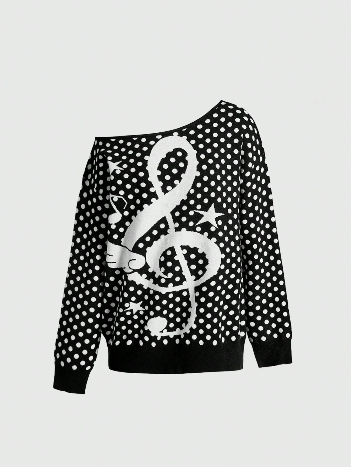 Maglione da donna kawaii con motivo a pois e note musicali, carino e dolce