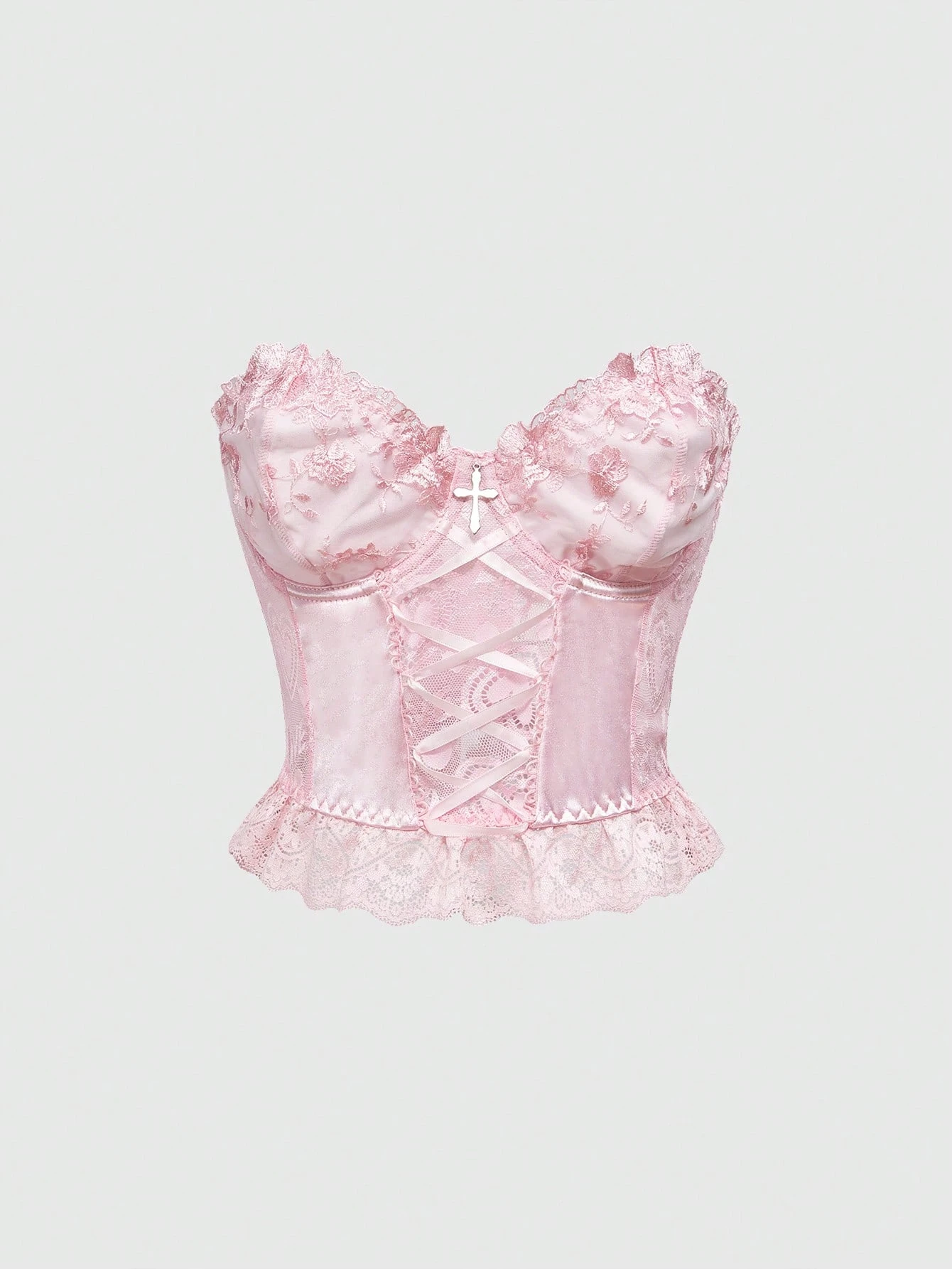 Kawaii Canotta sexy rosa da donna con fiori romantici, fiocchi e merletti, adatta per matrimoni