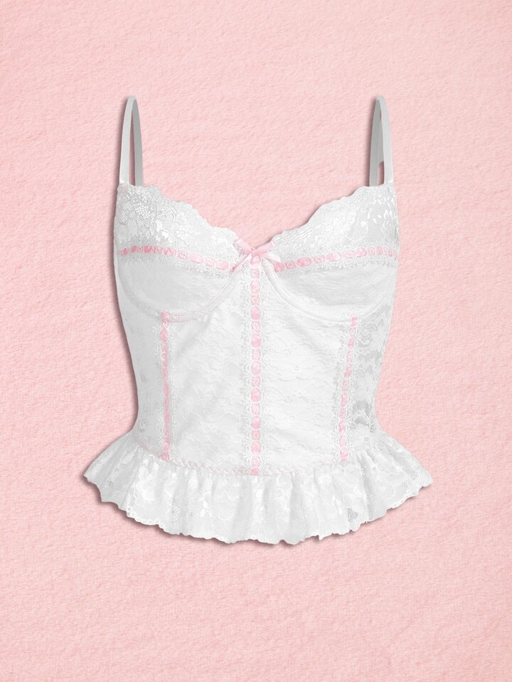 Kawaii bralette con volant pizzo a contrasto con decorato fiocco