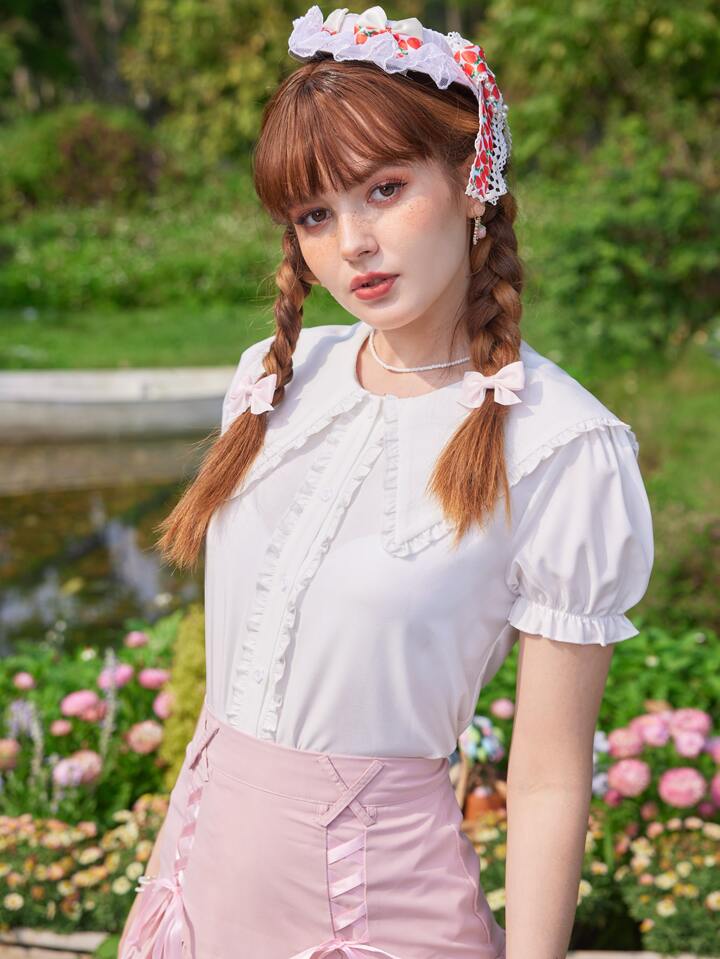 Kawaii Camicie da donna Pizzo a contrasto Volanti Colore unico Carino