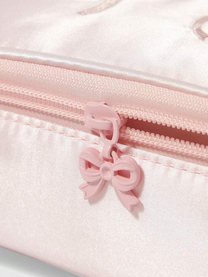 Kawaii Borsa cosmetica rosa in raso ricamato con fiocco
