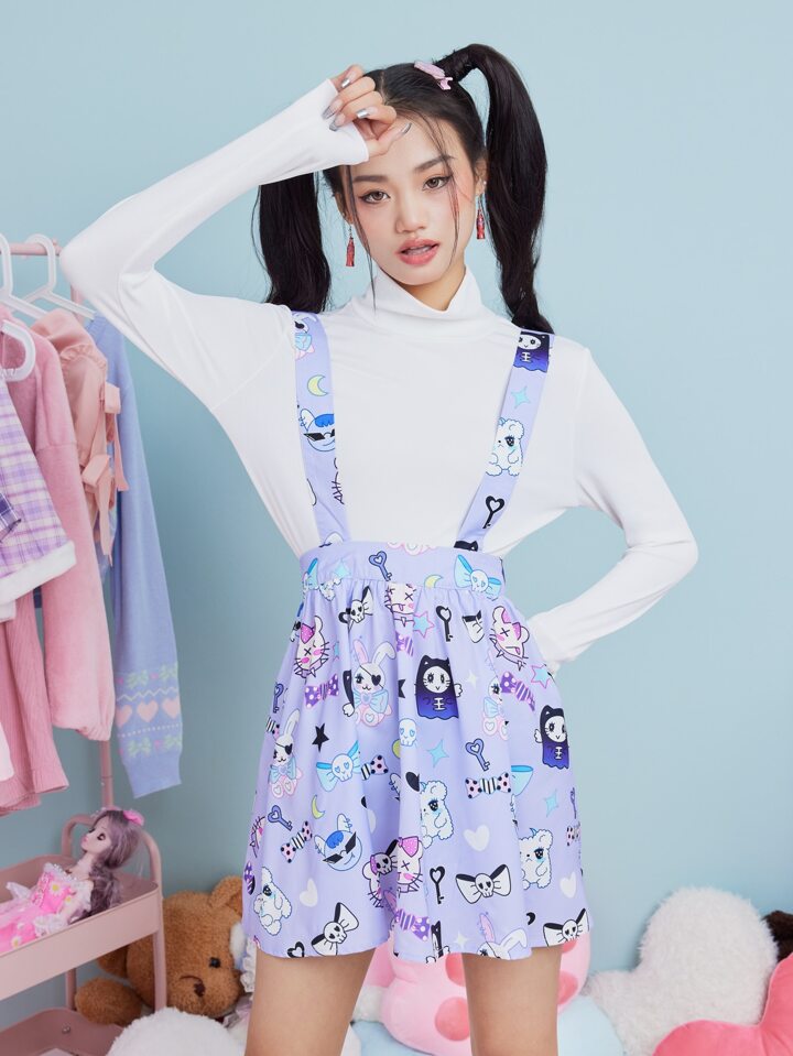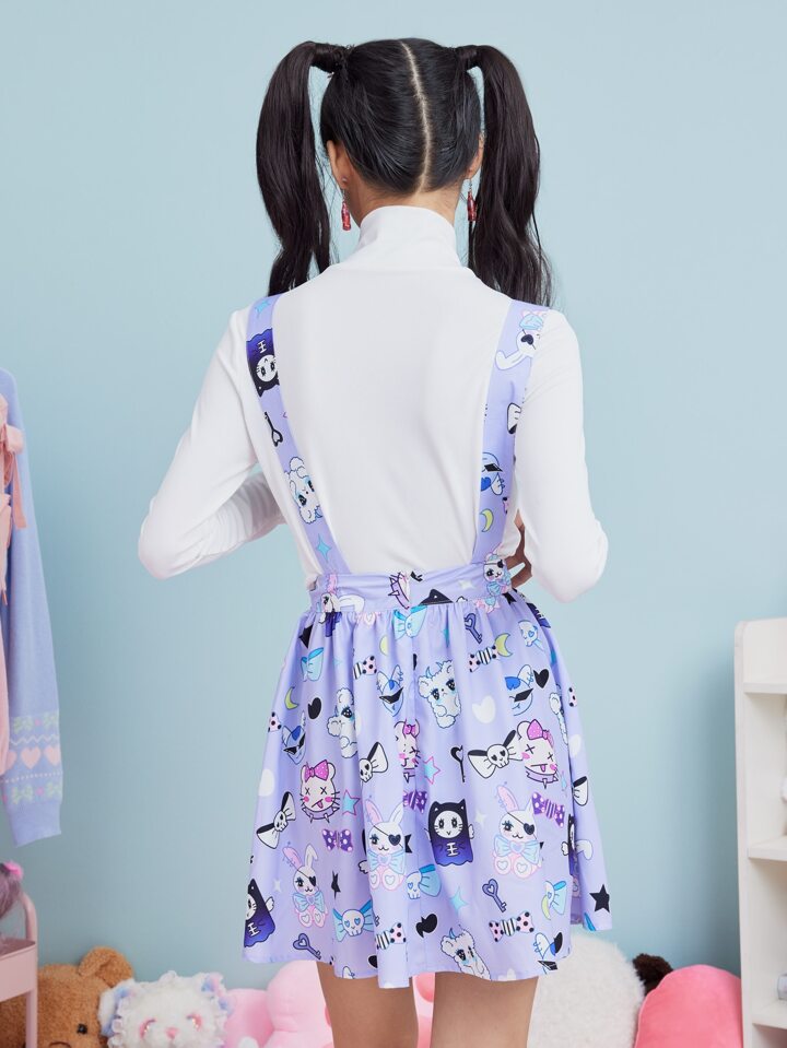 Kawaii Gonna salopette cranio & con grafica fumetto