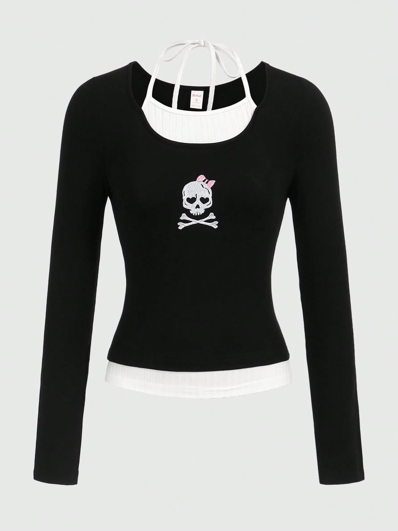 Kawaii Maglietta 2 in 1 con stampa teschi