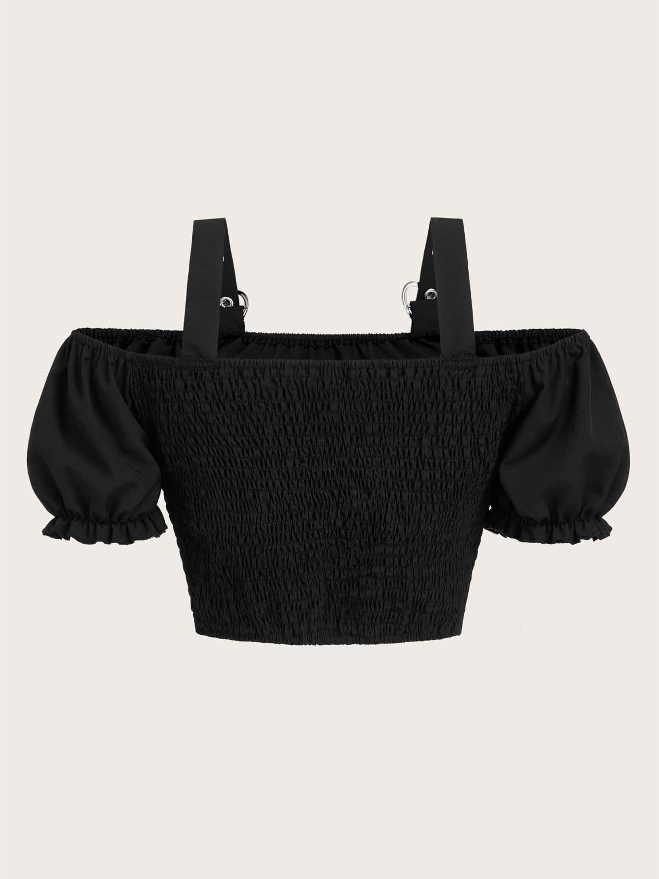 Kawaii Camicetta corta monocolore con spalle scoperte occhielli dettaglio fibbia