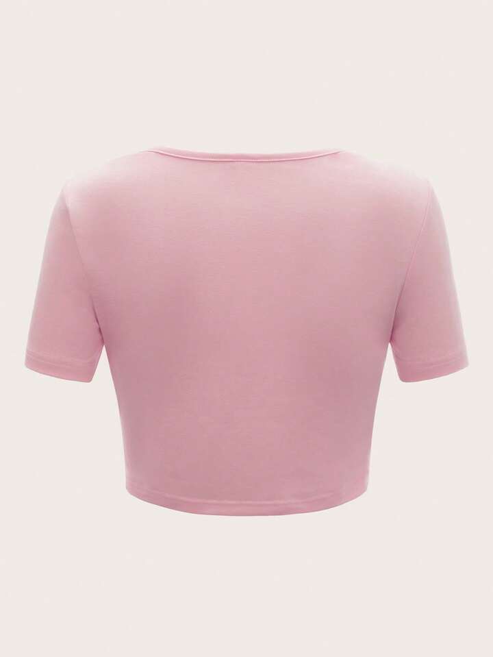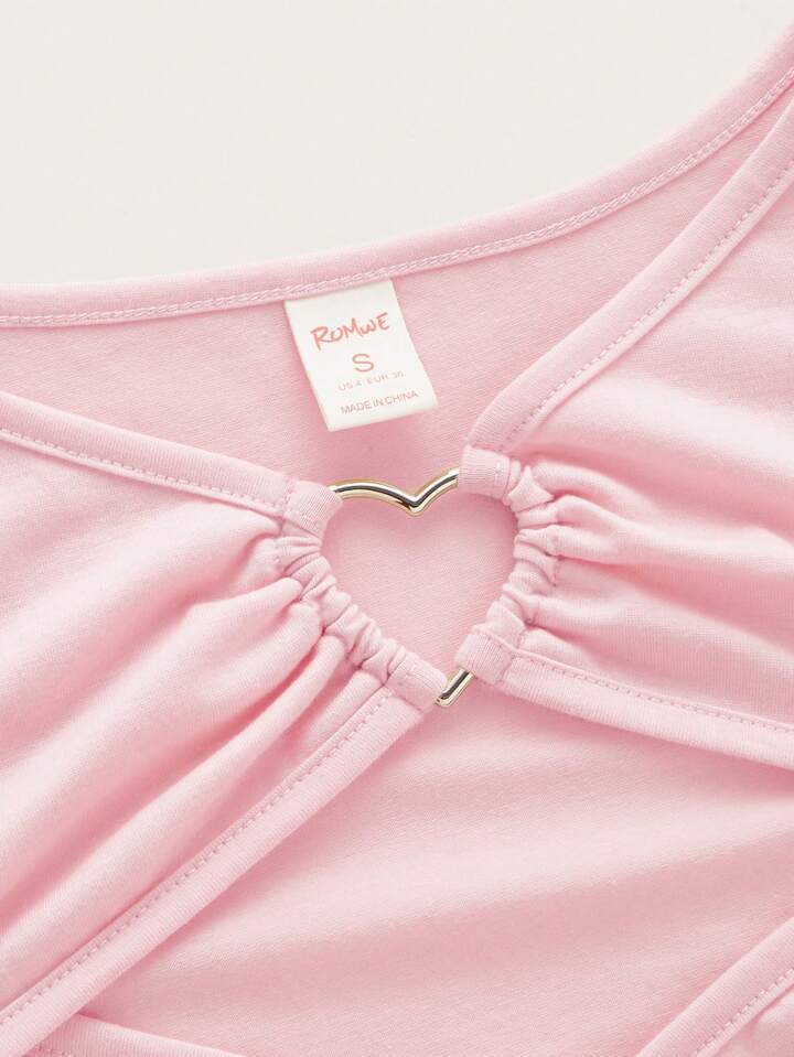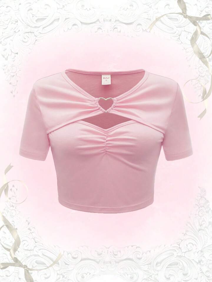 Kawaii Maglietta monocolore anello-cuore collegato scavato plissettato