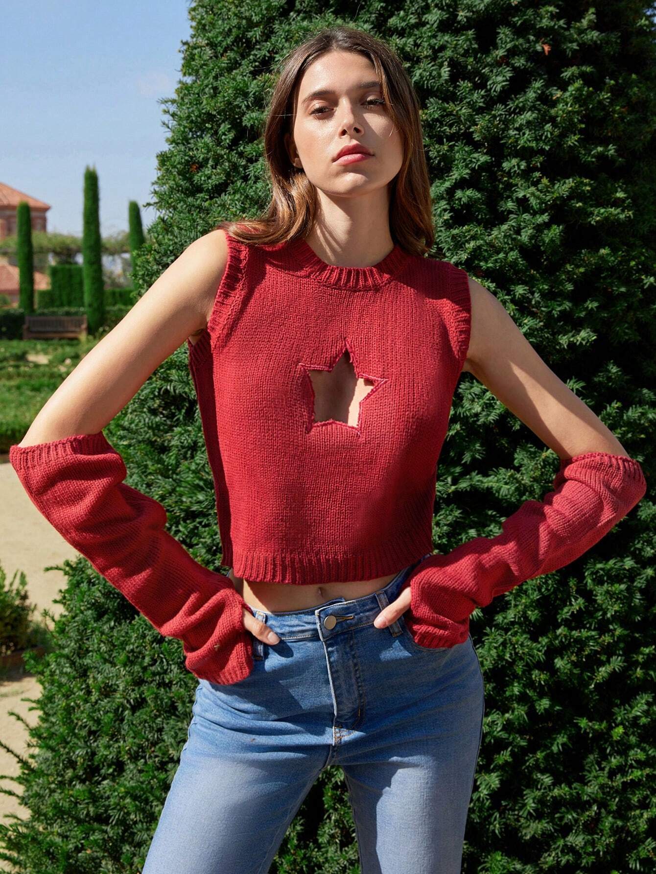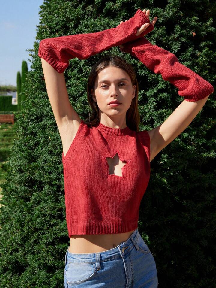 Kawaii 1 paio Gilet in maglia stella scavato & supermaniche