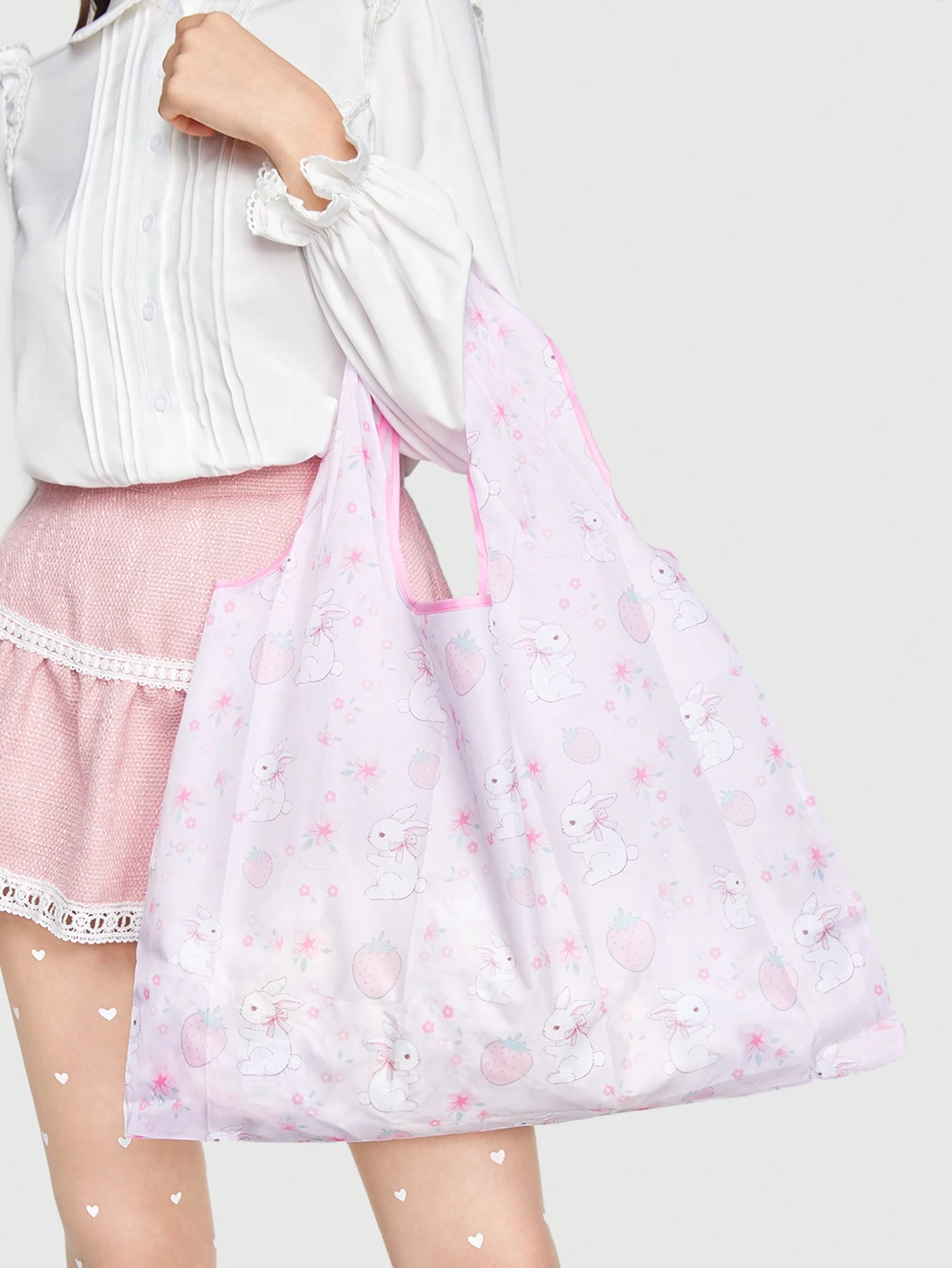 Kawaii Borsa shopping fragola & modello coniglio portabile pieghevole
