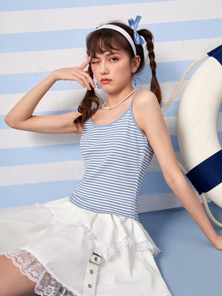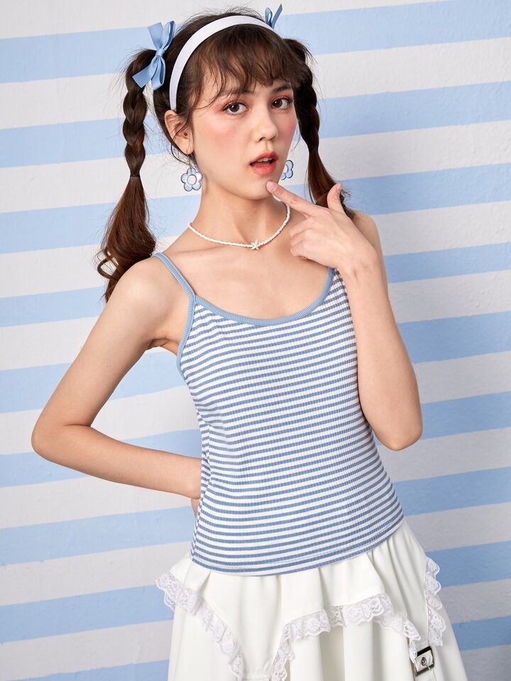 Kawaii Canottiere e camicie da donna A strisce Casual