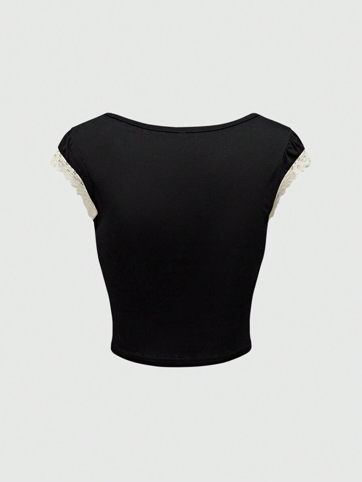 Kawaii Maglietta corta donna con stampa farfalla dolce, inserti in pizzo, per outfit estivi sexy
