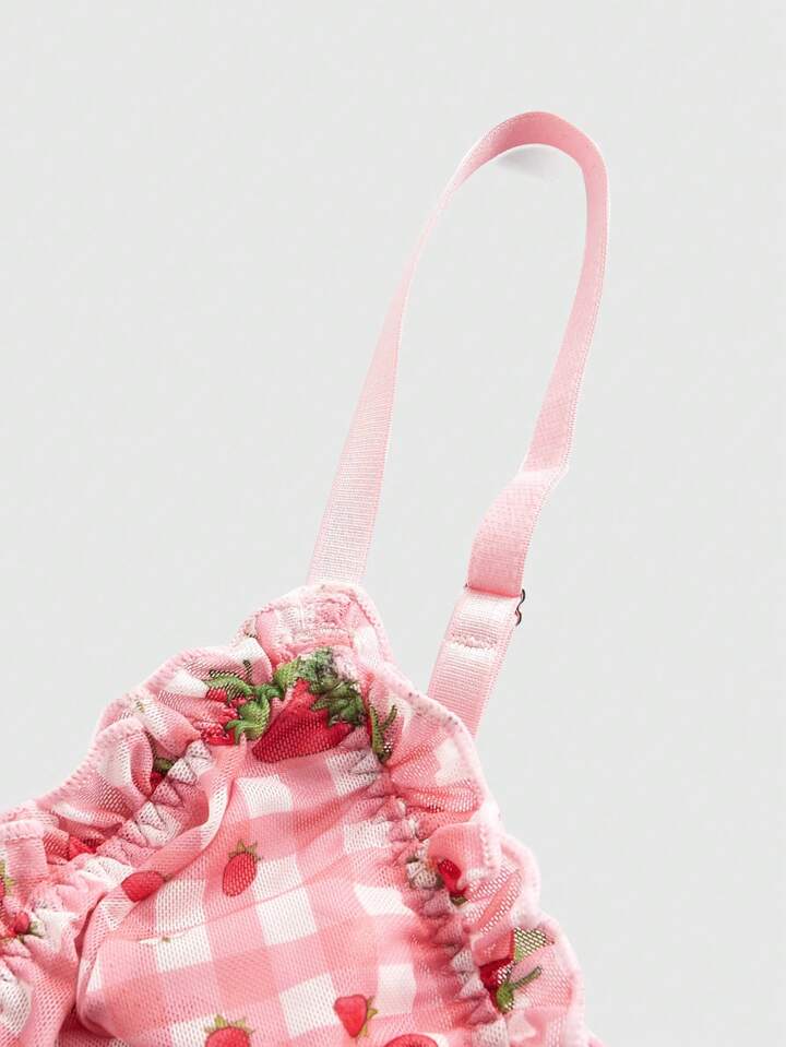 Kawaii Set Intimo Sexy Stampato Con Pattern A Fragola E Design In Rete, Decorazione A Quadri E Tessuto A Rete