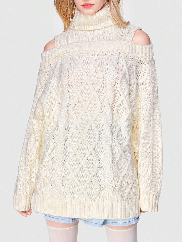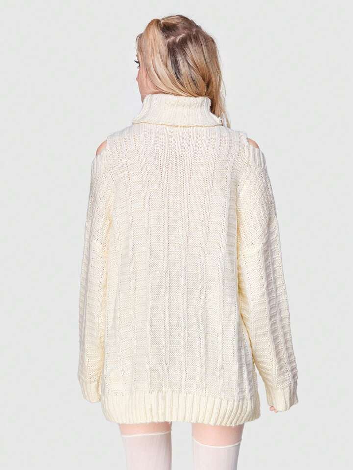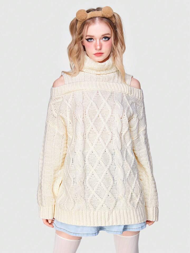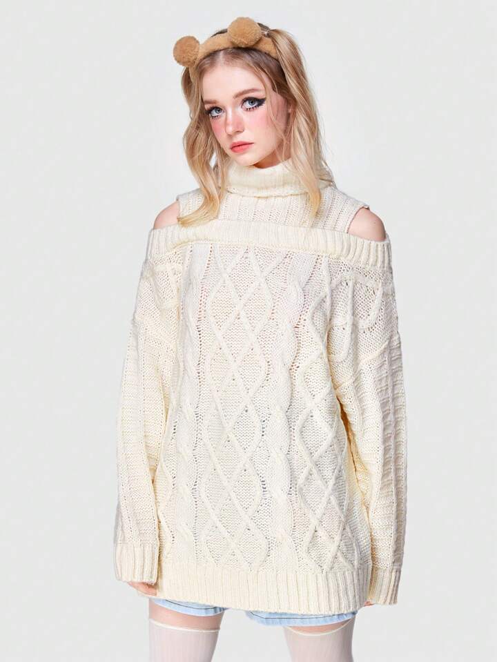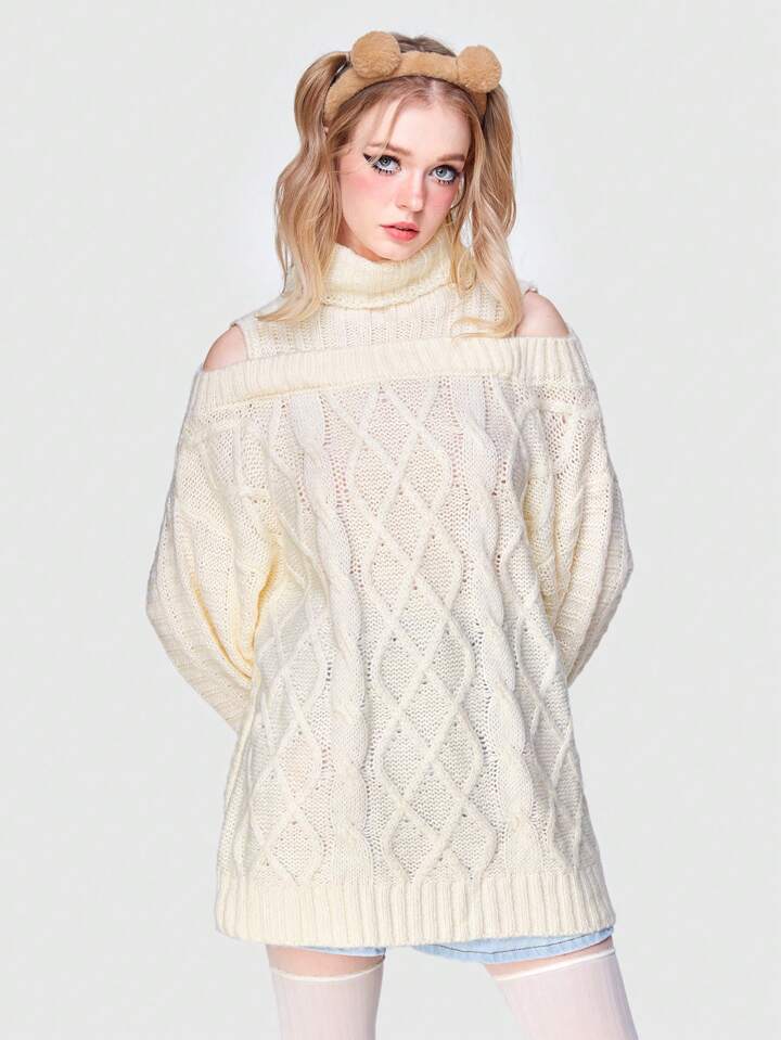 Kawaii Maglione dolcevita con spalle scoperte in maglia a trecce