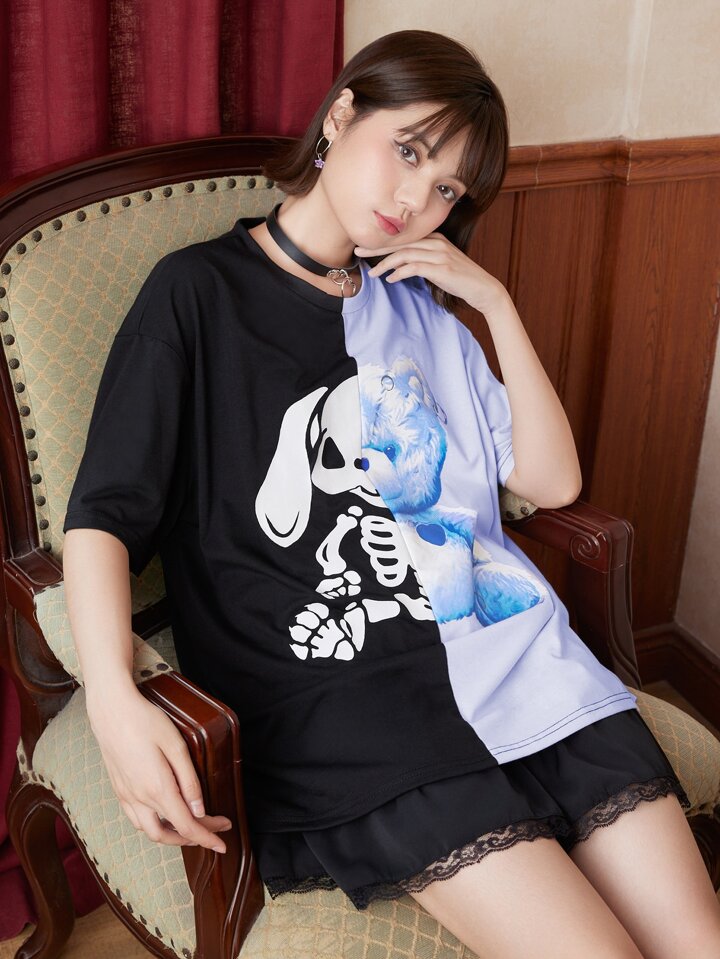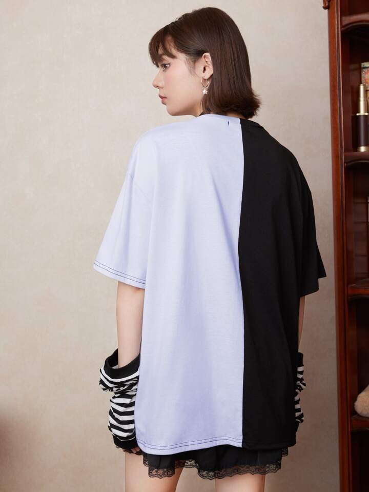 Kawaii Magliette donna Fumetto Blocchi di colore Casual