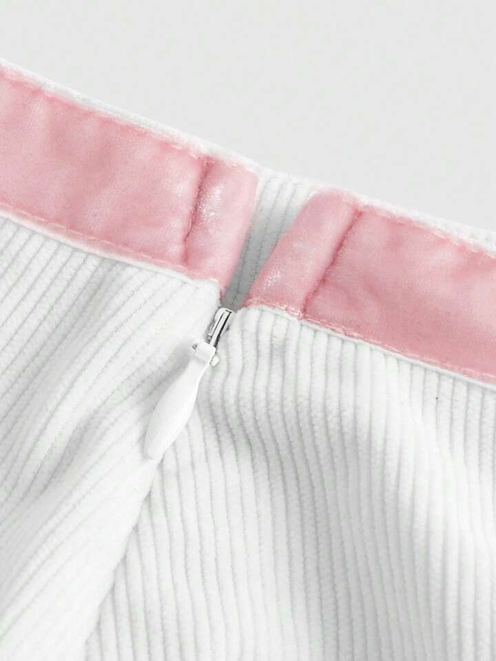 Gonne bicolore plissettato con decorato fiocco di velluto a coste