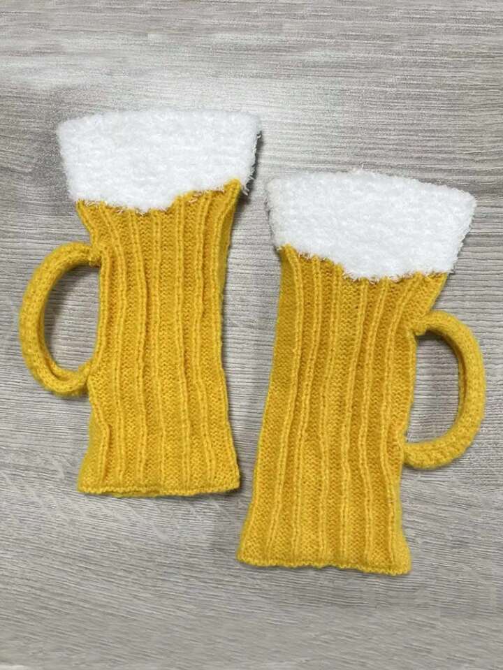 Kawaii Leggings alla moda invernali unisex con motivo di birra in tessuto lavorato a maglia in 3D, traspiranti e comodi per tutte le stagioni