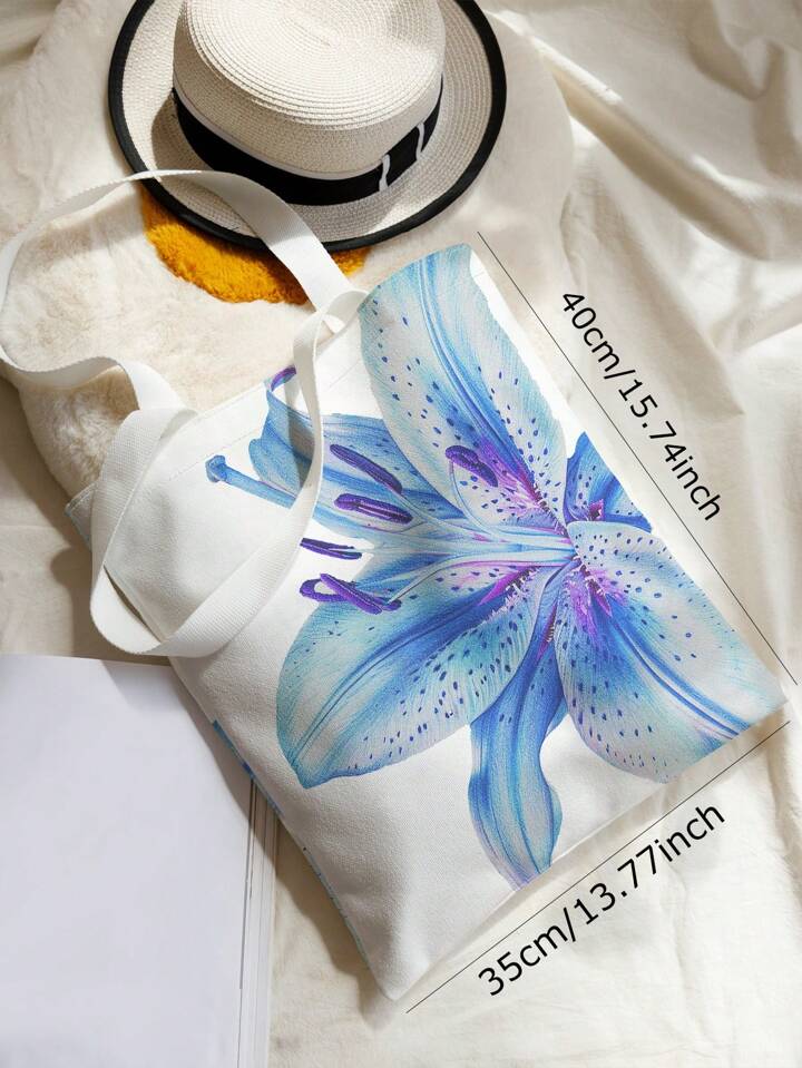 Kawaii Borsa a tracolla in tela con stampa floreale oversize stampata su entrambi i lati, adatta per pendolarismo e tempo libero