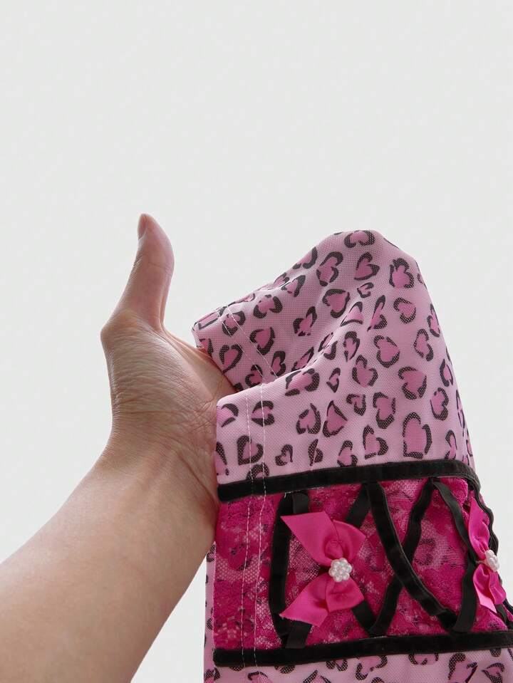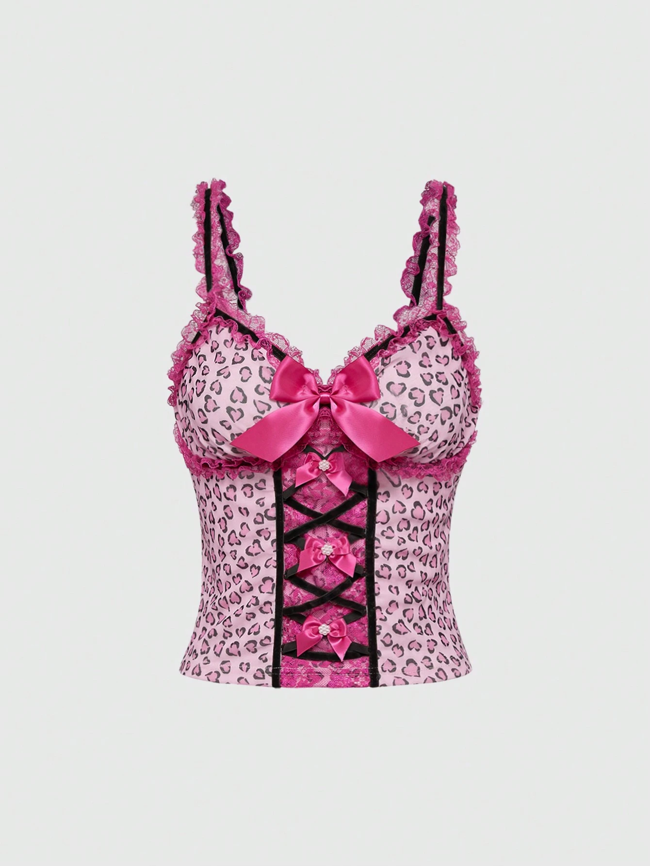 Kawaii Canottiera vintage rosa leopardata con balze e fiocchi per lo stile gyaru delle donne