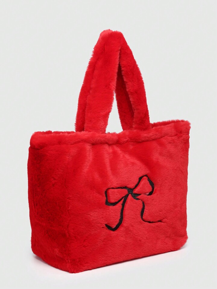 Kawaii Borsa shopping da donna di grandi dimensioni con fiocco in pelliccia e ricamo, ideale per San Valentino