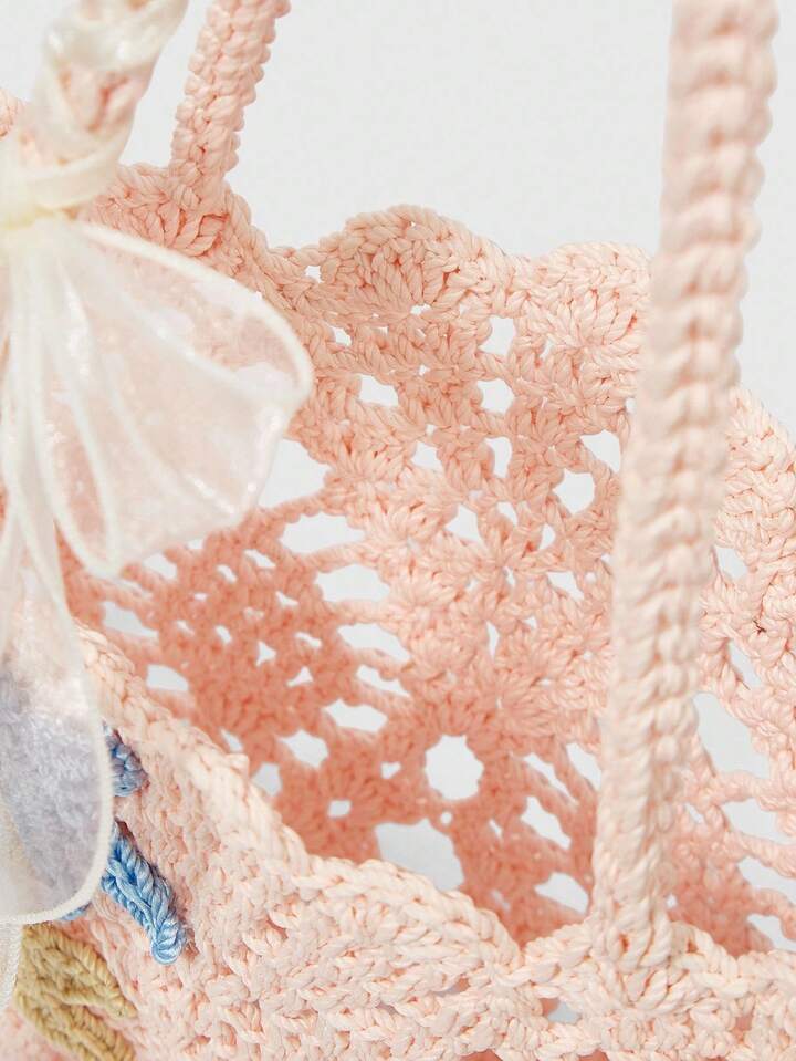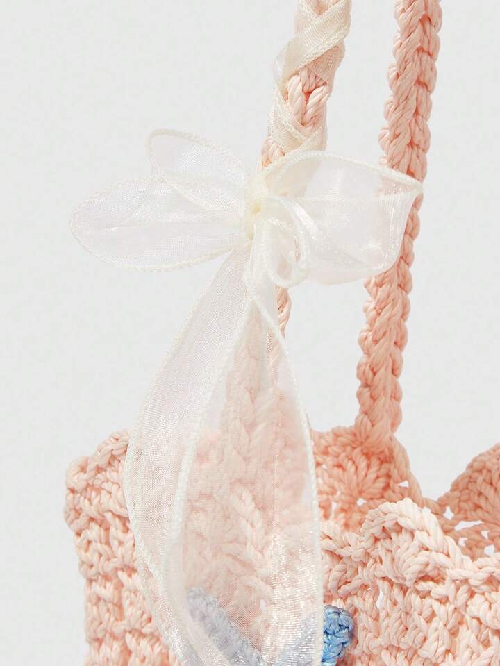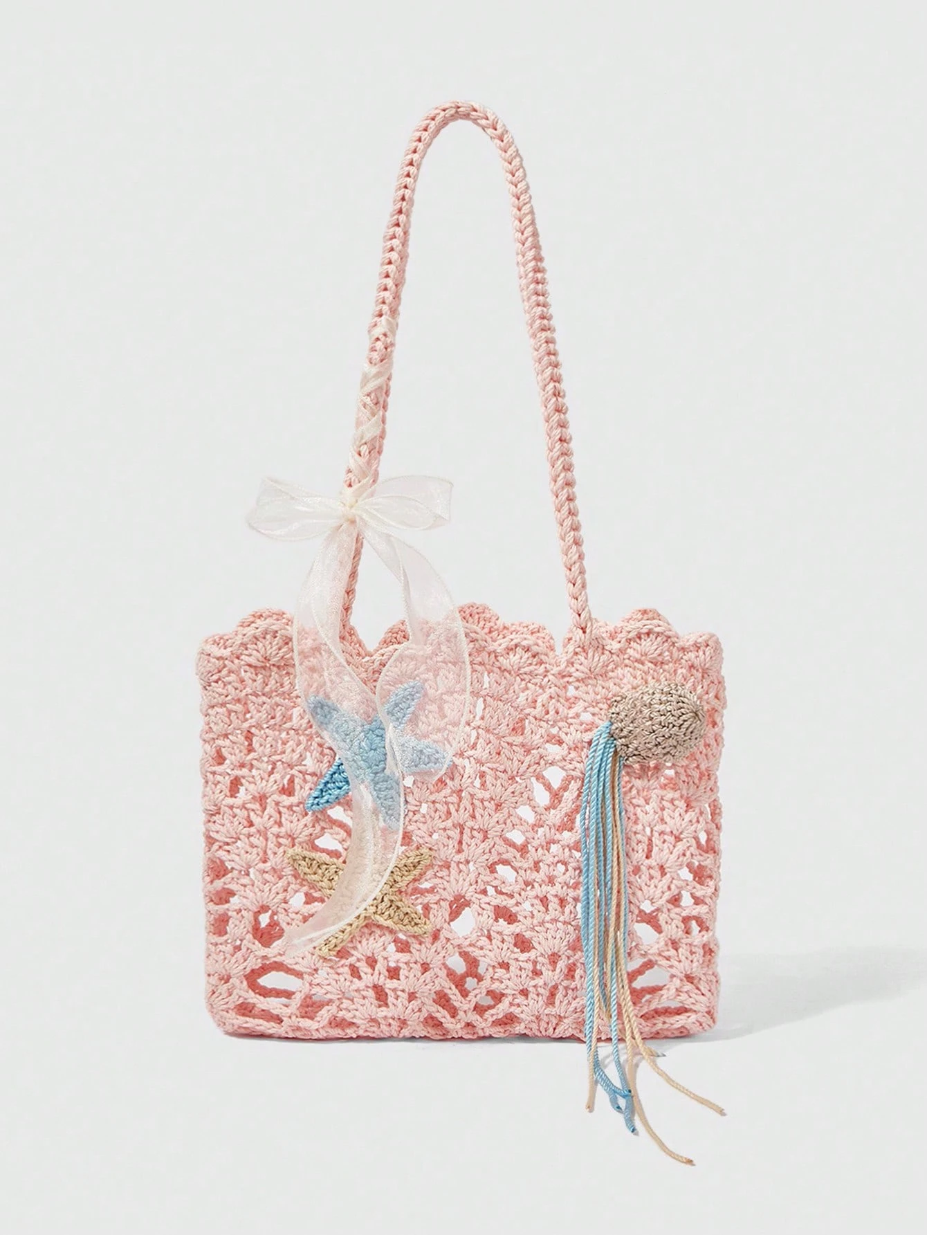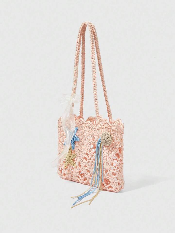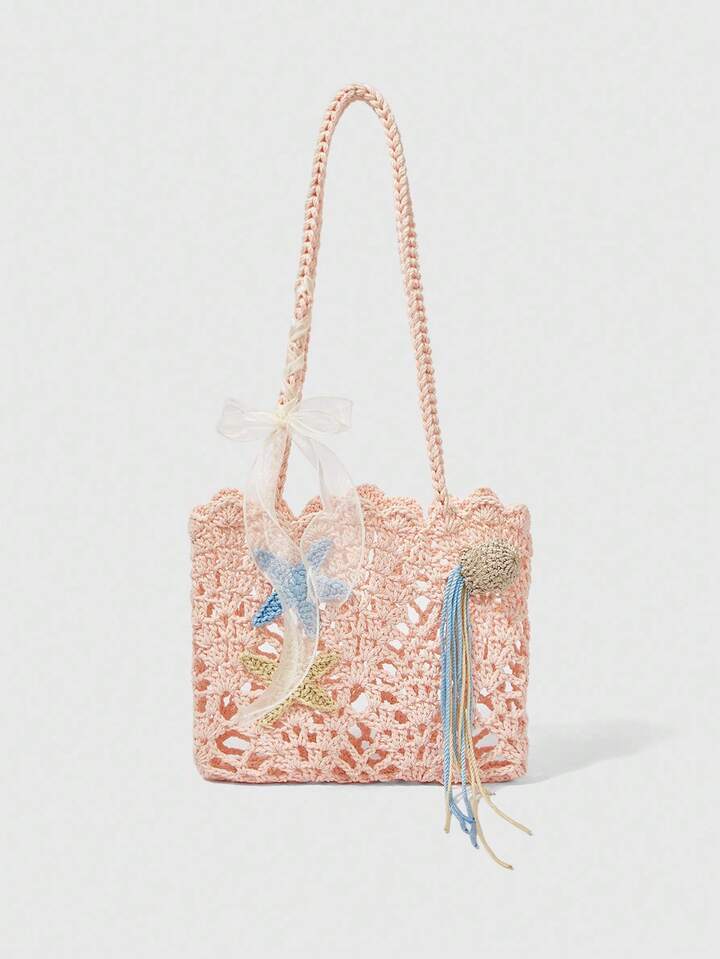 Kawaii Borsa a spalla da donna in stile bohémien, realizzata a mano all'uncinetto con decorazione a stelle marine, borsa da spiaggia per vacanze
