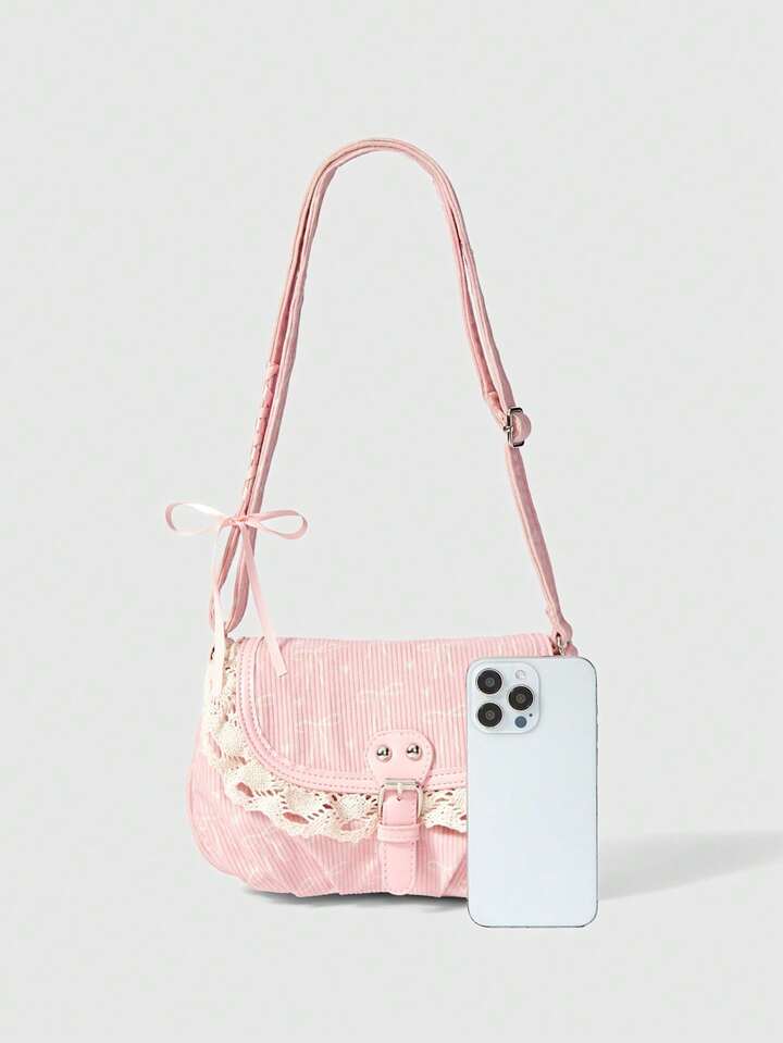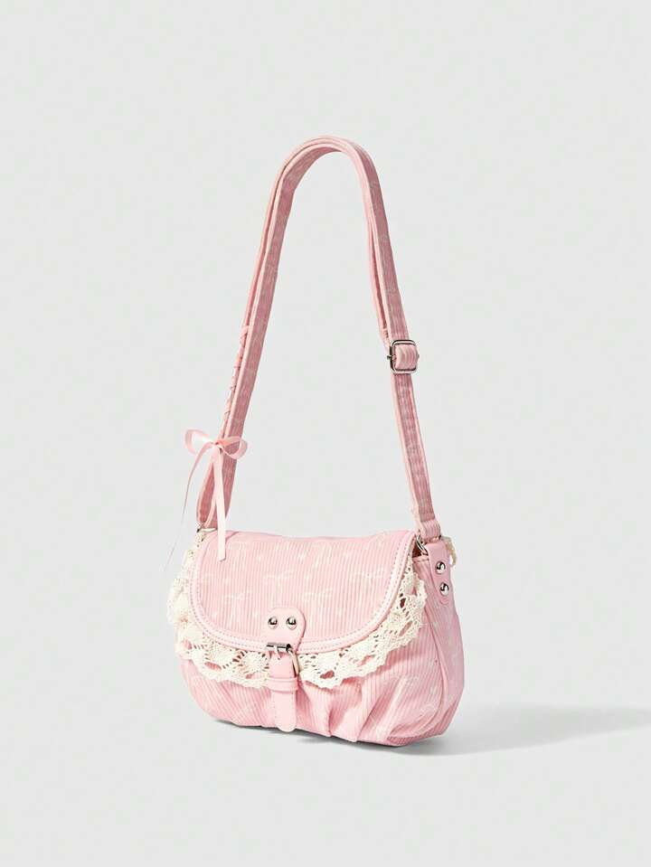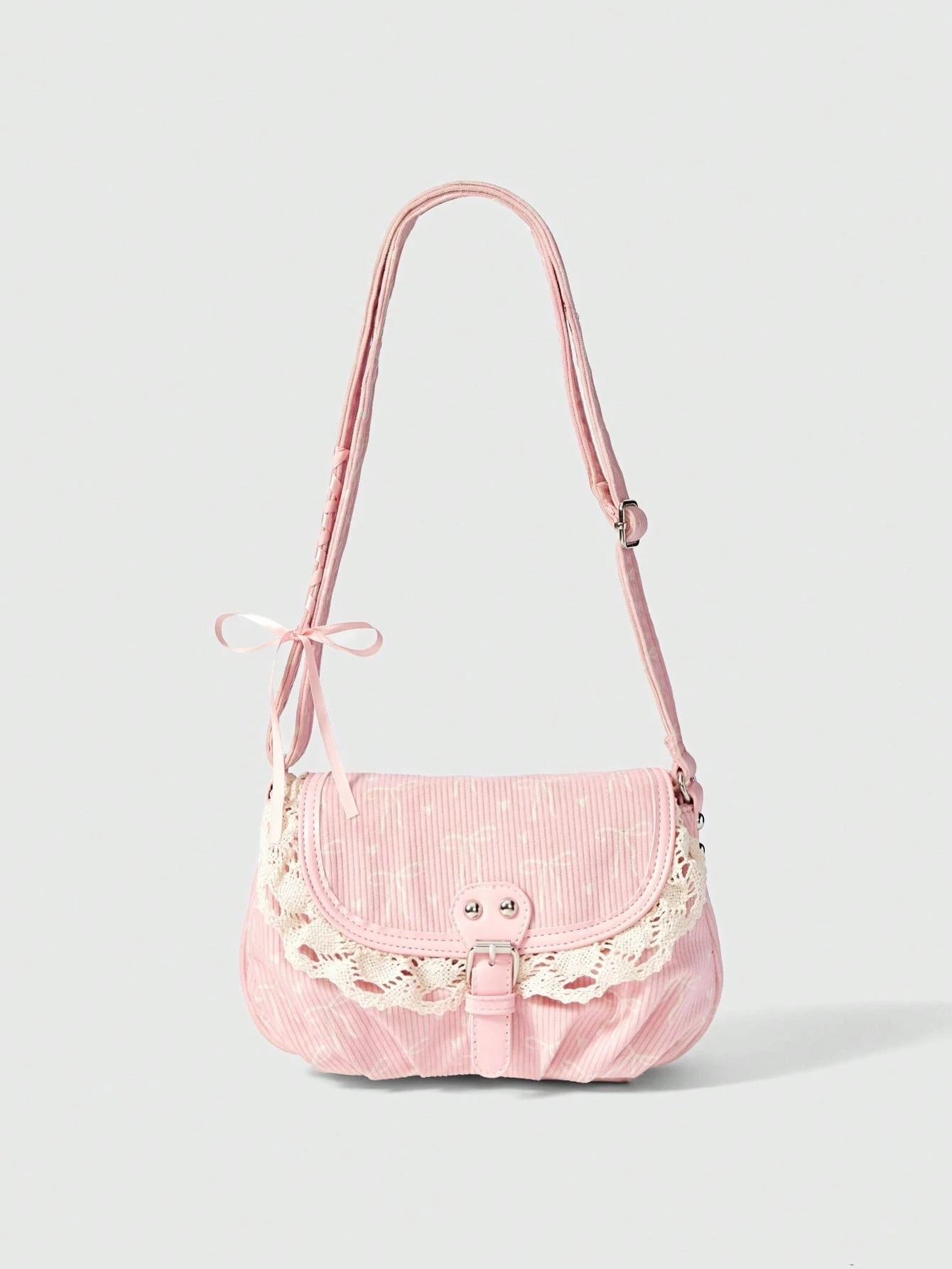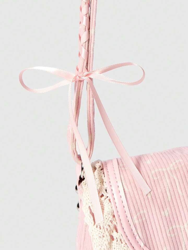 Kawaii Borsa a tracolla rosa con stampa a fiocco per donna