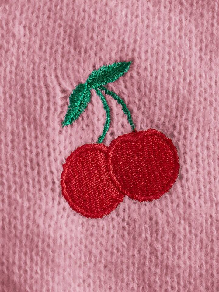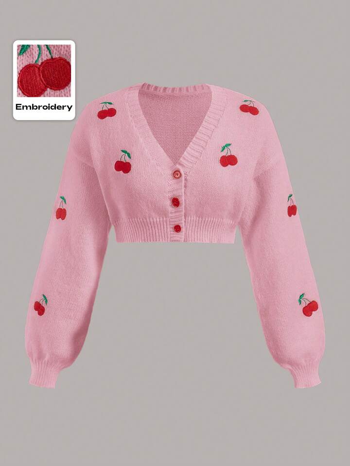 Kawaii Cardigan corto monopetto a maniche lunghe con motivo a ciliegie, adatto per autunno/inverno, da donna