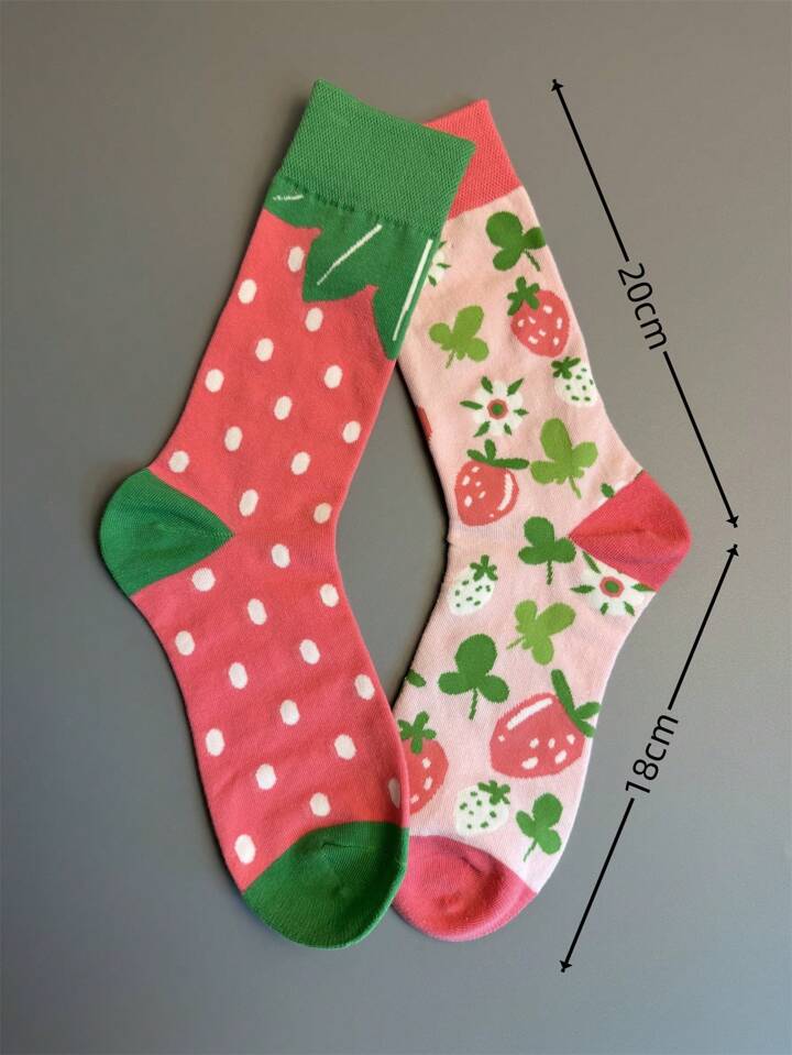 Kawaii Calze corte semplici con stampa colorata di fragole per donne