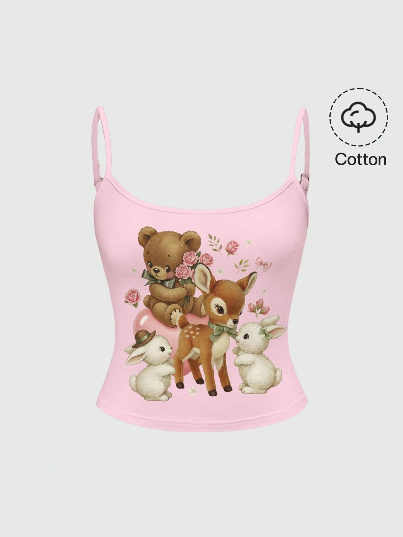 Kawaii Canottiera da donna con stampe carine di cervi, orsi, conigli e motivi floreali