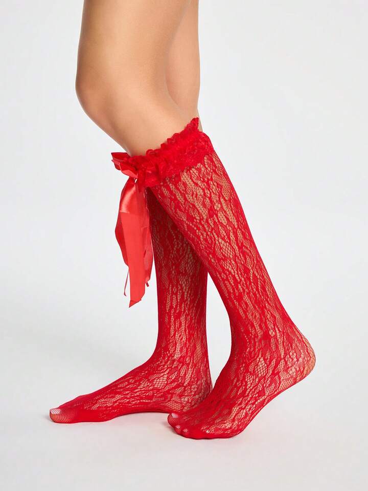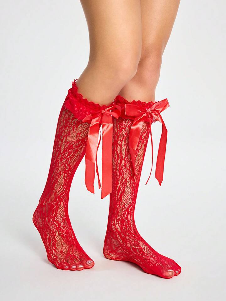 Kawaii Calze da donna alla caviglia con decorazione a fiocco, alla moda e carina