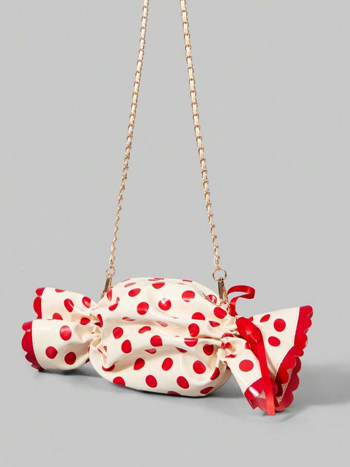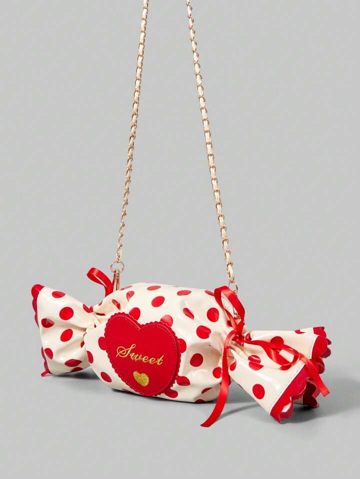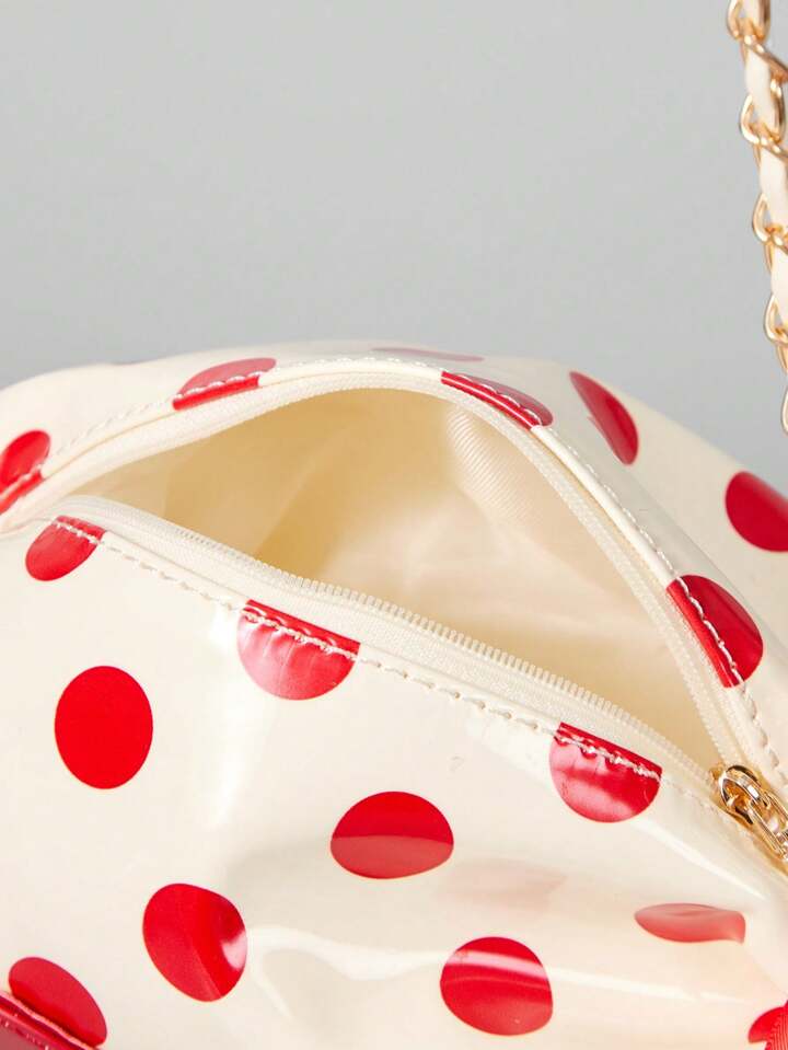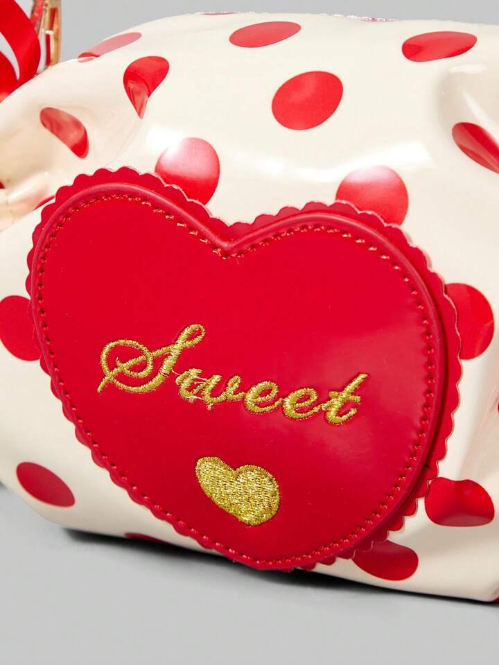 Kawaii Borsa a tracolla da donna con stampa a pois, adatta per il pendolarismo quotidiano e i viaggi di San Valentino