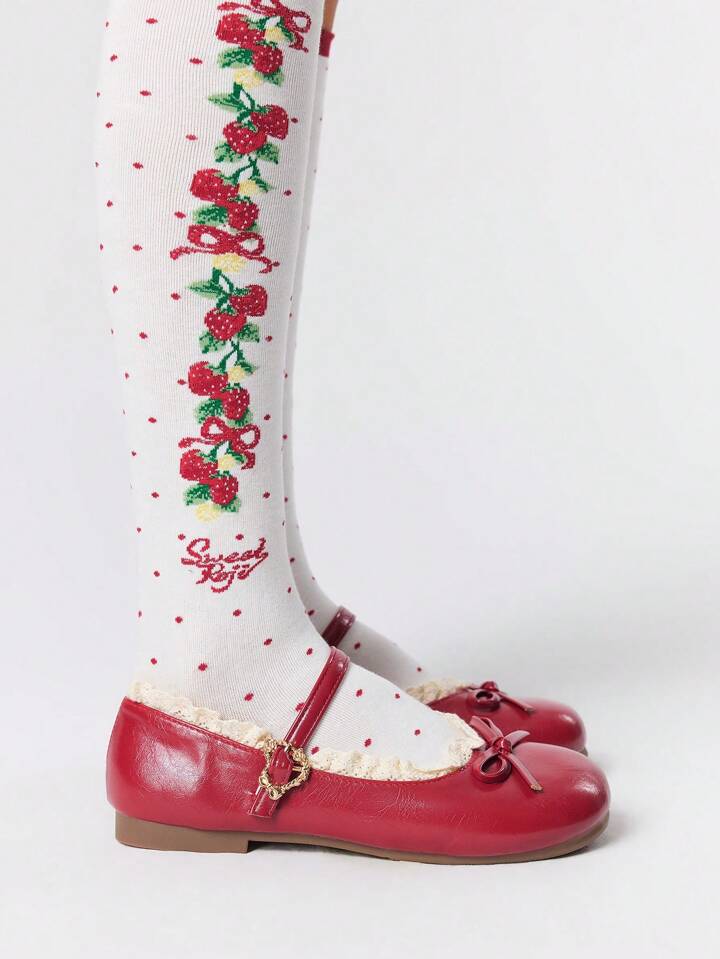 Kawaii Mocassini Mary Jane rossi da donna, con punta chiusa, fiocco e lacci, ballerine lolita