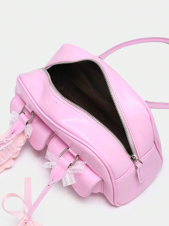 Kawaii Fermaglio per capelli da donna in stile retrò con decorazione a coniglietto carino, fiocco scozzese, decorazione a ciliegie e cuori, borsa a tracolla/sotto al braccio, con tasche multiple, borsa a tracolla