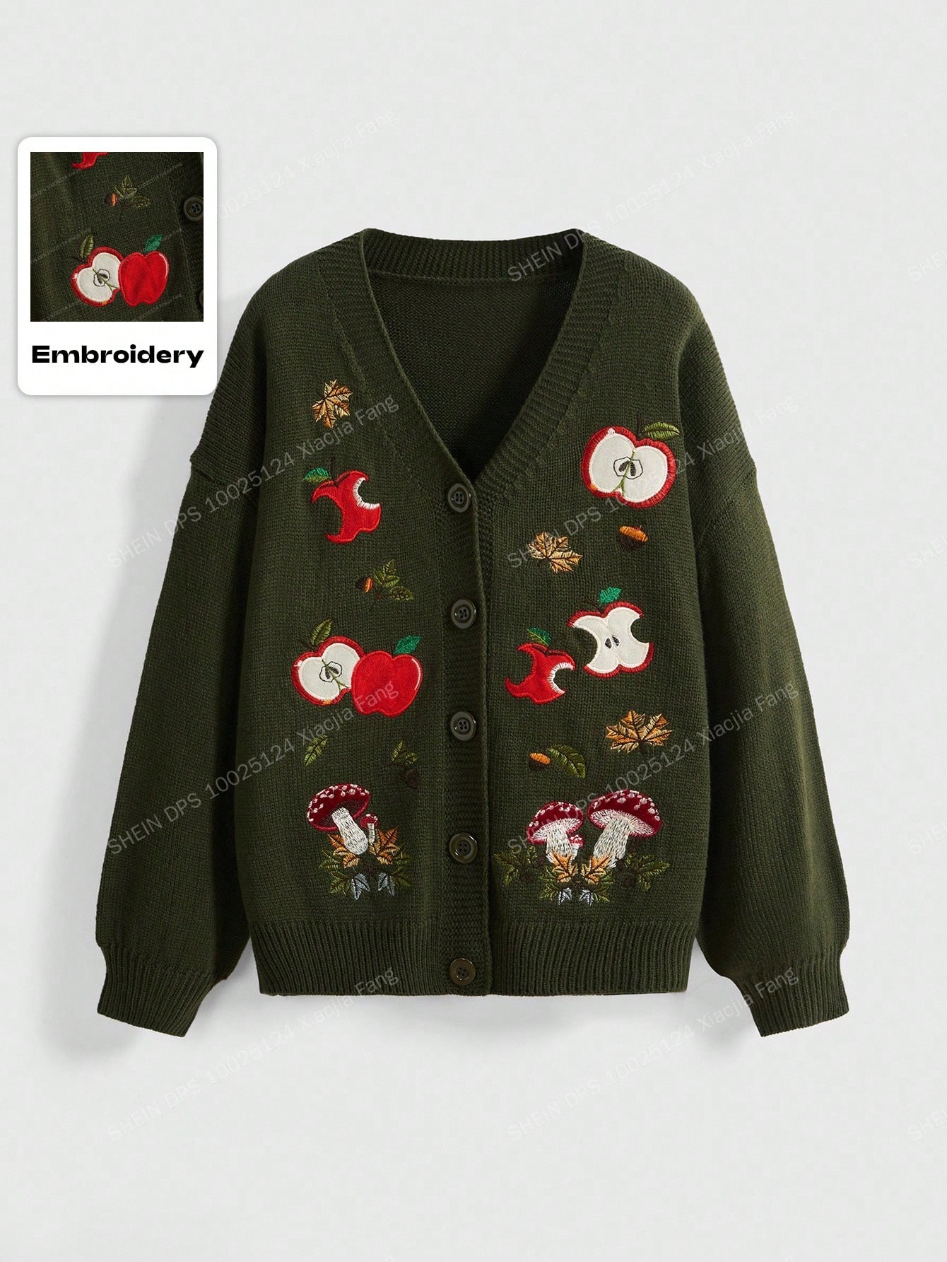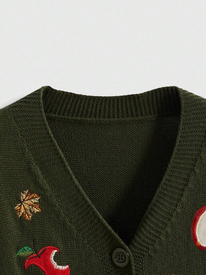 Kawaii Cardigan da donna in stile retrò campagnolo con ricamo a foglia di mela, autunnale