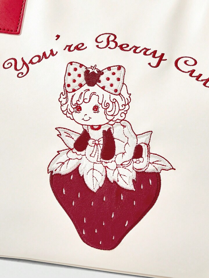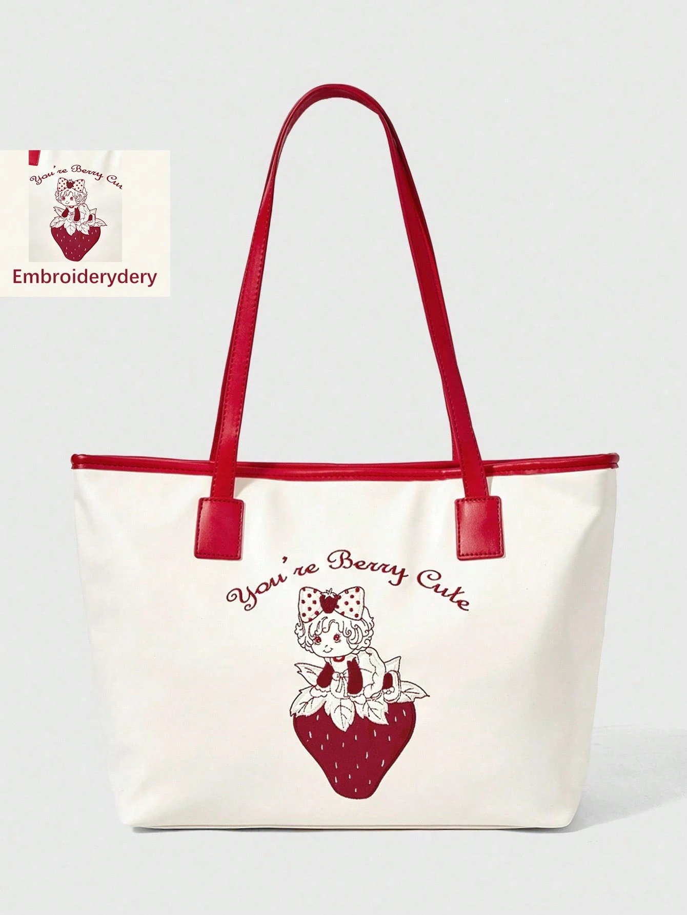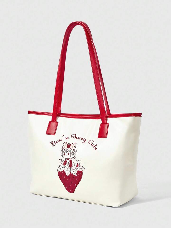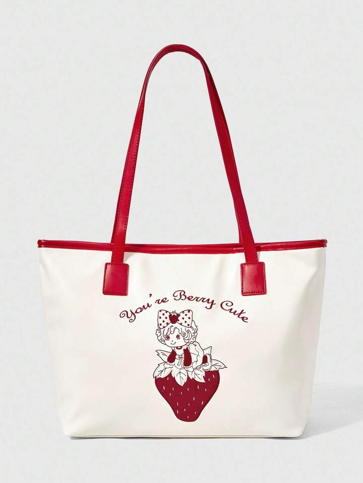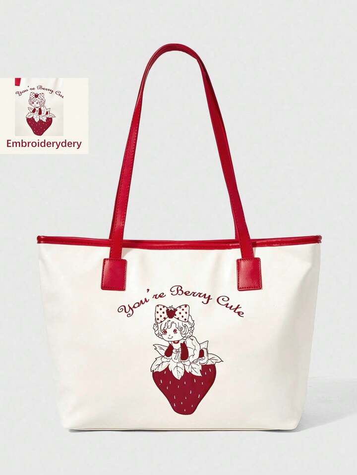 Kawaii Borsa a tracolla da donna retrò e carina a motivo di fragole, versatile per pendolarismo, grande capacità, Articolo n. 303675
