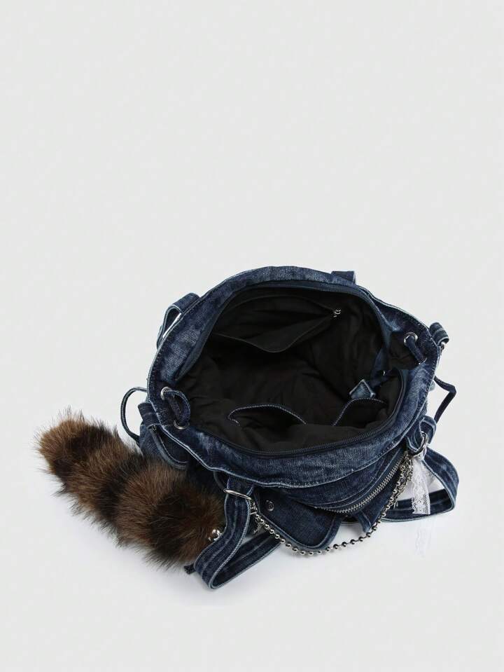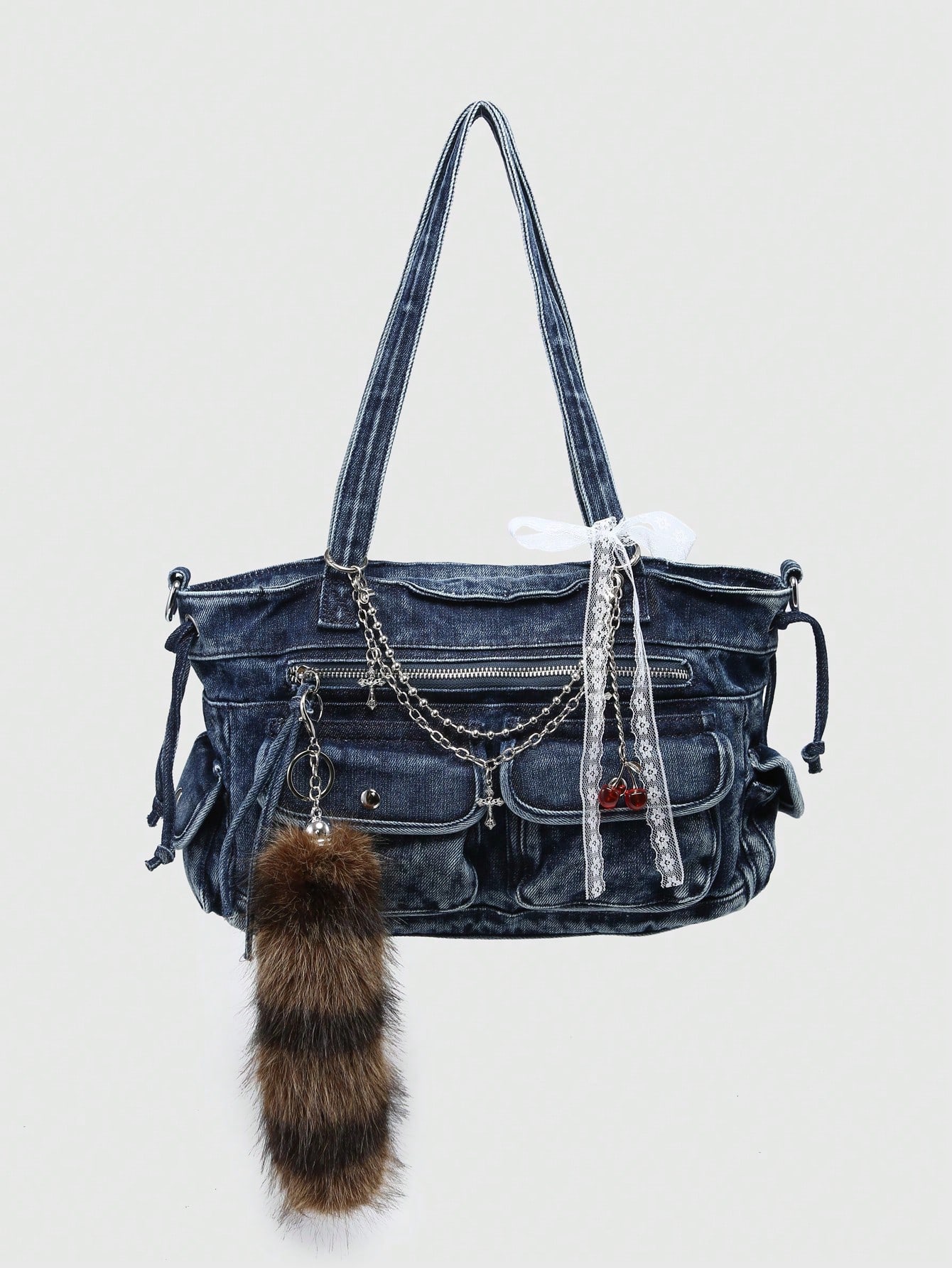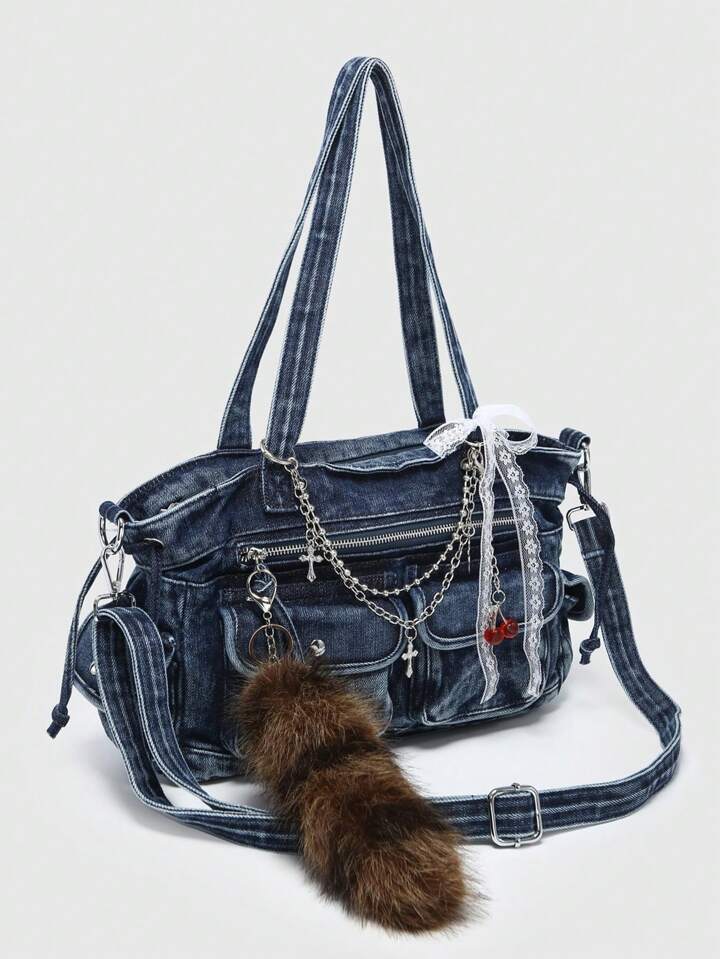 Kawaii Borsa a tracolla da donna stile retrò, con decorazione di nastrini a forma di croce e cuore, colore sfumato, grande capacità, con tasche multiple