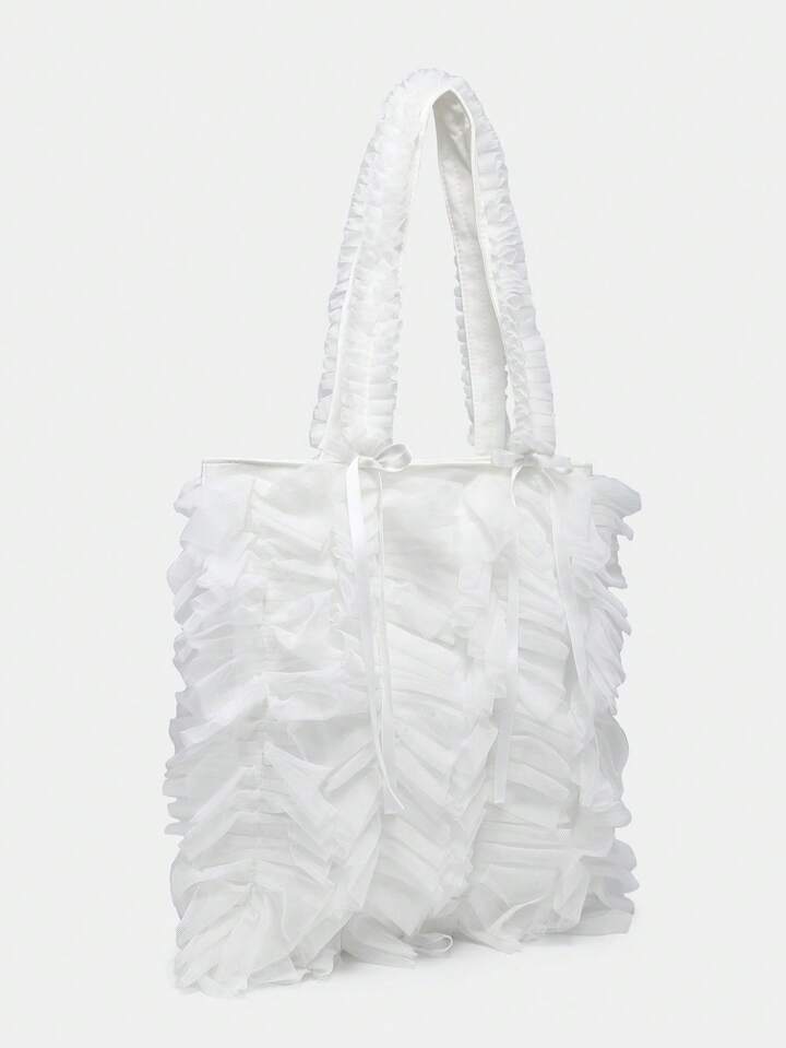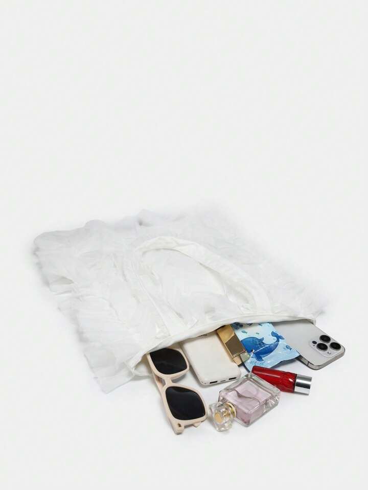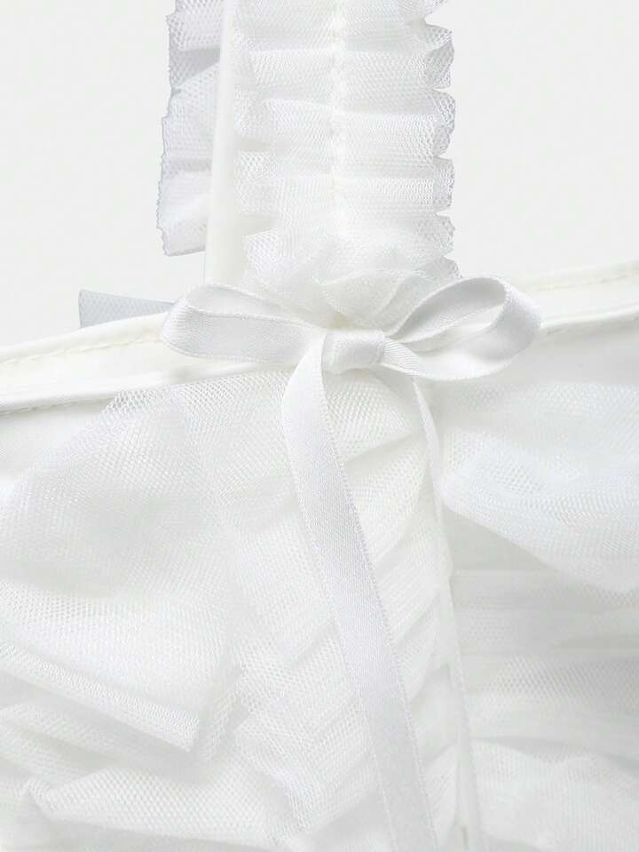 Kawaii Borsa tote di grandi dimensioni da donna in stile vacanziero retrò in rete con volant e fiocco