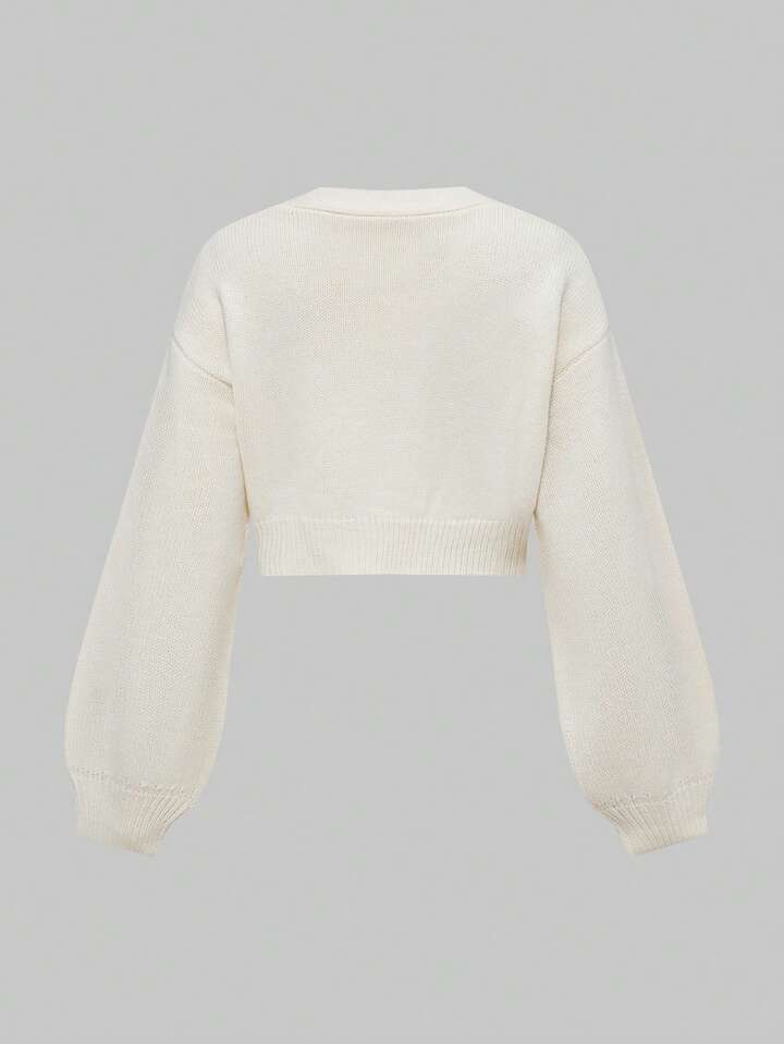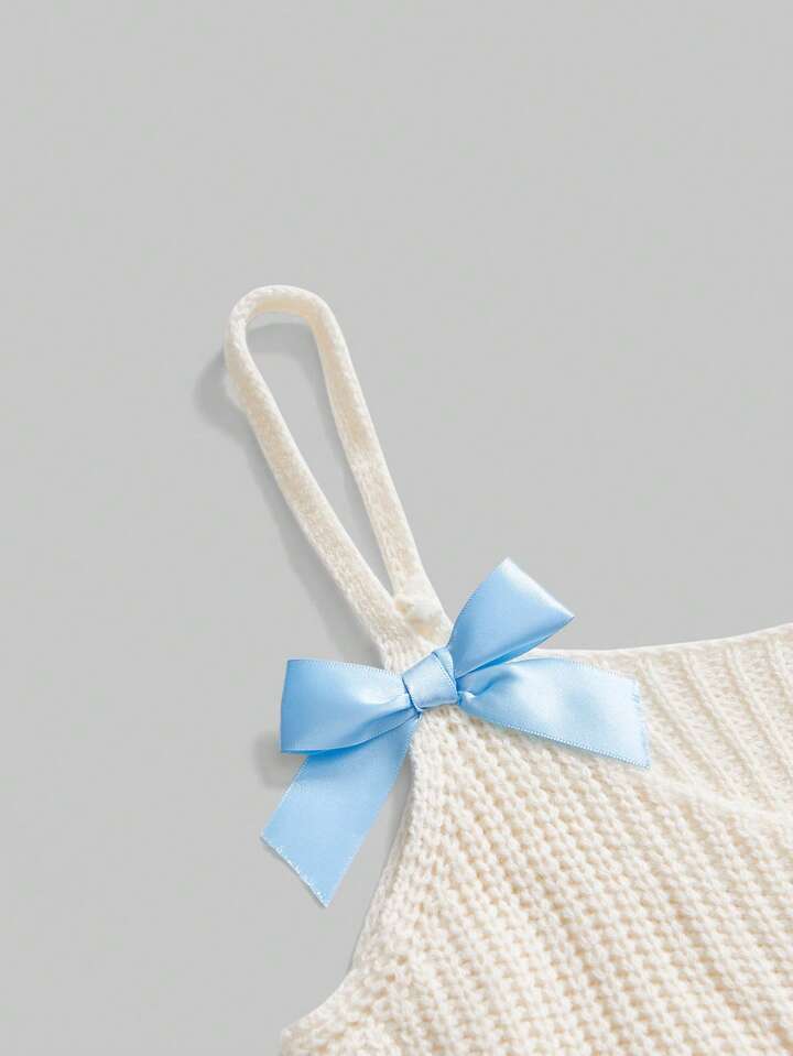 Kawaii Set da 2 pezzi composto da: Vestito a canotta in maglia con scollo a V, decorazione ricamata a orsetto e fiocco in nastro. Cardigan in maglia con scollo a V, spalle scoperte, decorazione ricamata a orsetto.
