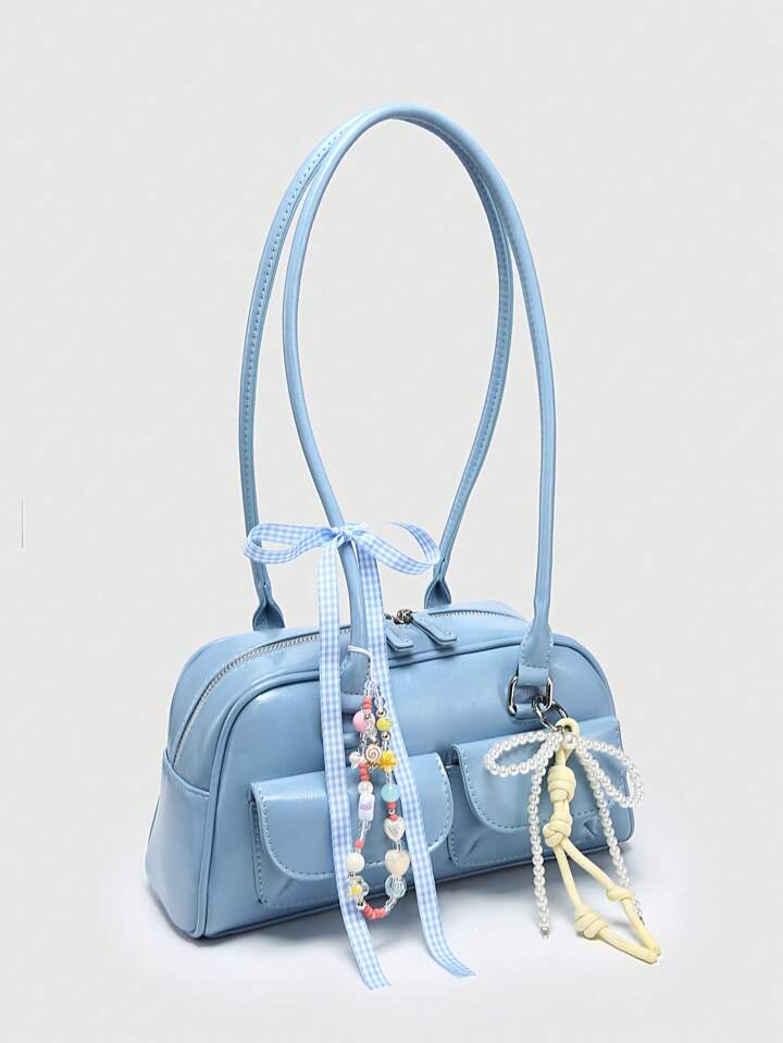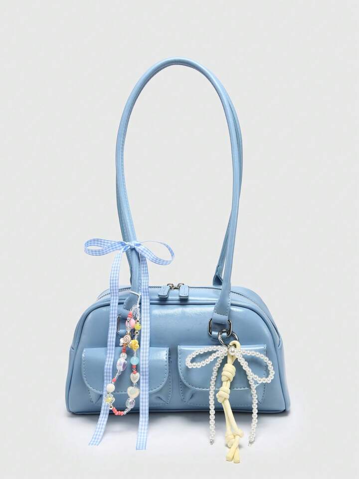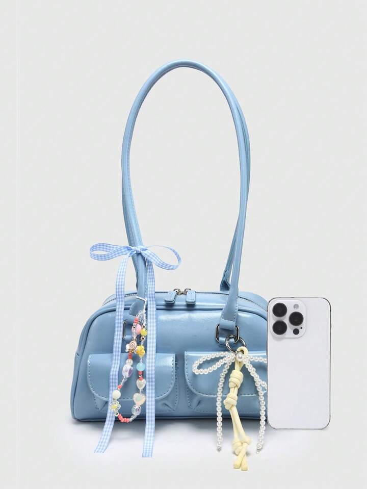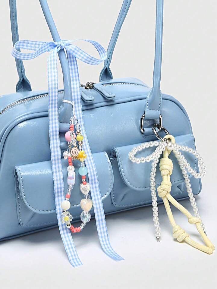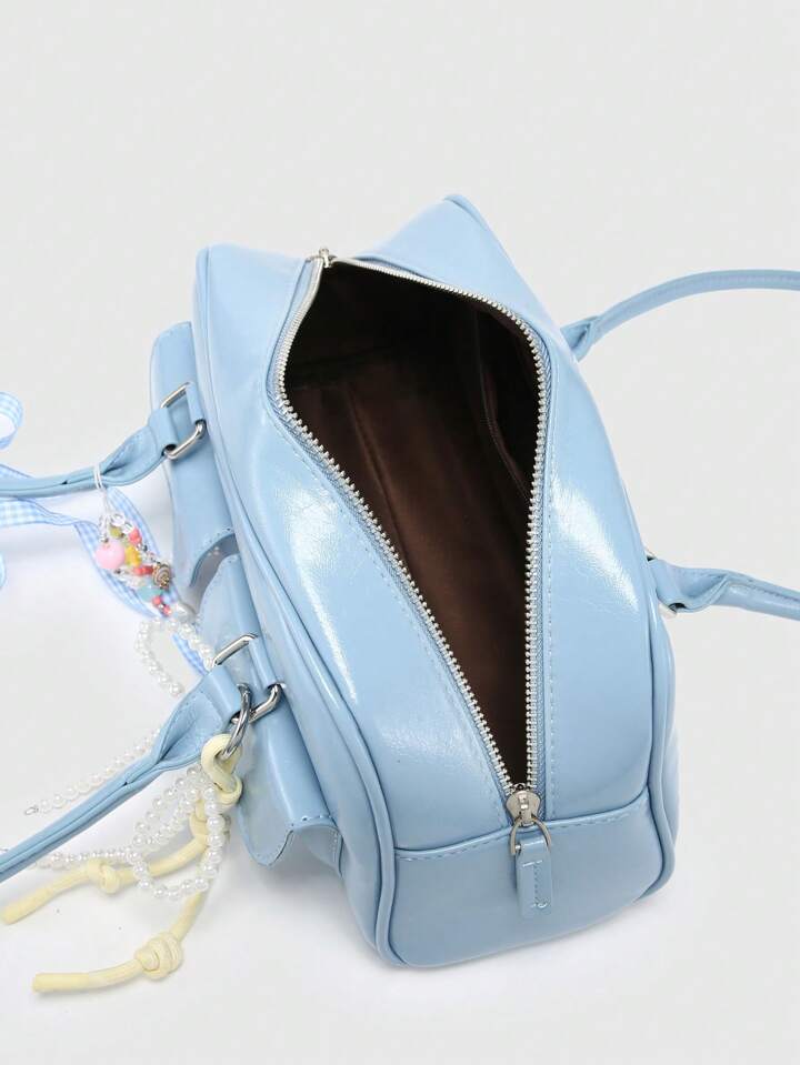 Kawaii Borsa a tracolla vintage da donna con fiocco a quadri, decorazione a cuore e ciliegie, con tasche multiple, borsa tote stile Boston