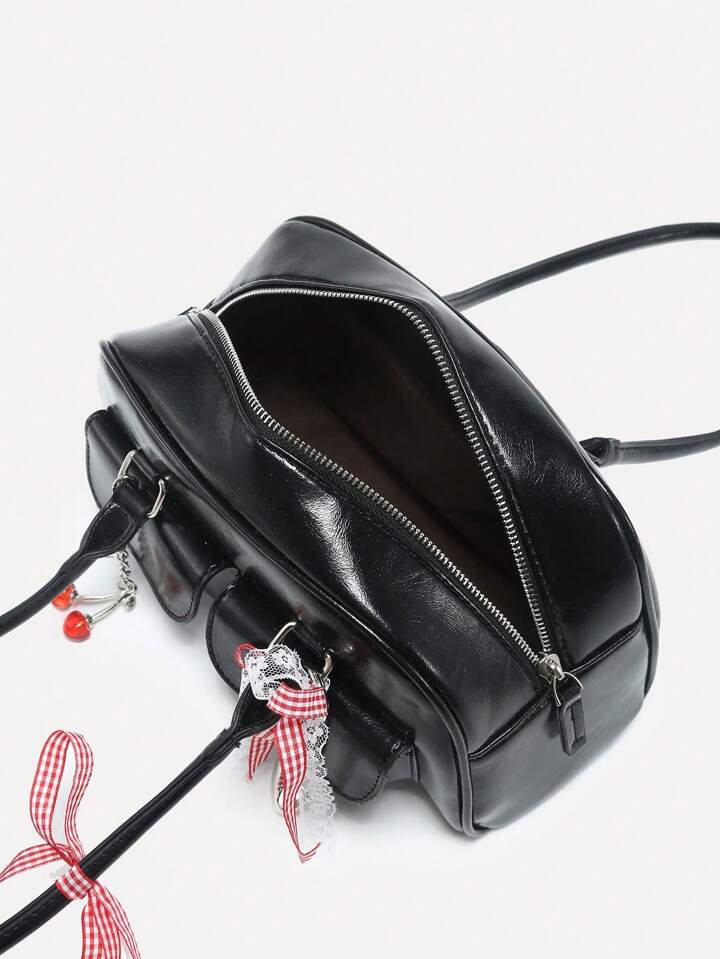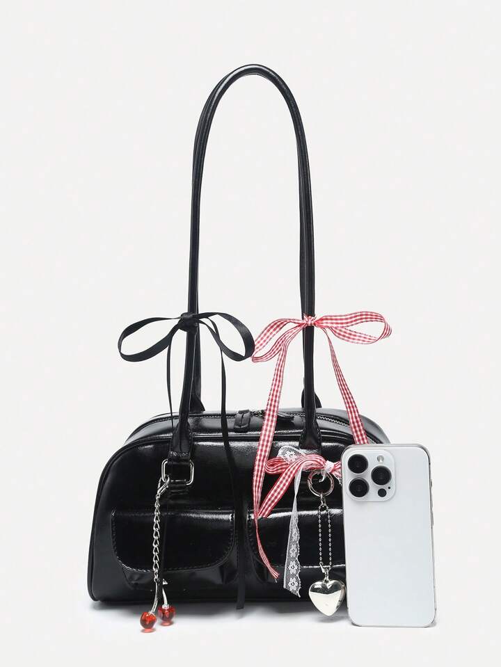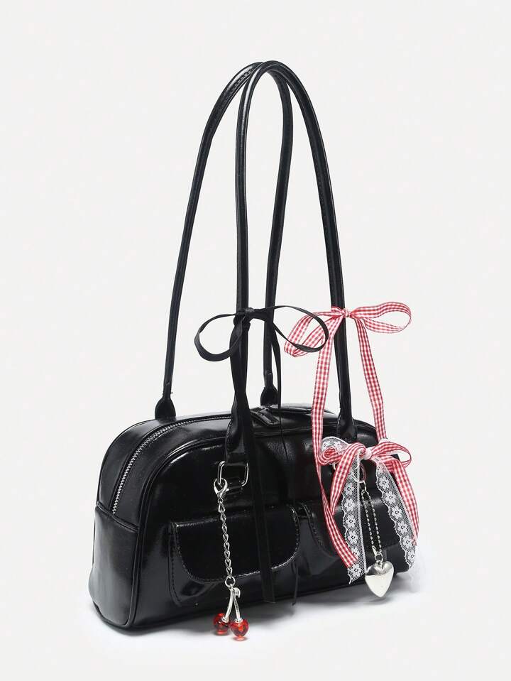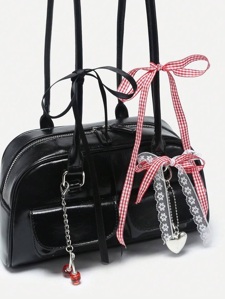 Kawaii Borsa a tracolla con decorazioni a quadri vintage, adorabili fiocchi a fiocco di ciliegia e cuori e molteplici tasche in stile Boston- ideale per donna